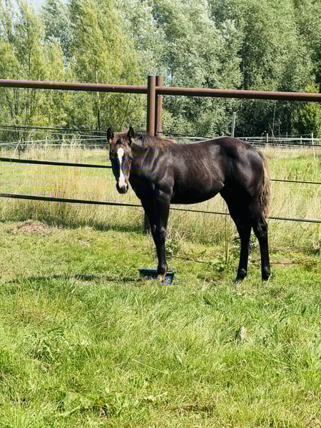 Fine est née le 30 avril 2025. Elle est très confiante et extrêmement curieuse. Elle se mène très bien, même dans la circulation elle est souveraine. Elle gère également très bien le transport en van. Très sage chez le maréchal-ferrant. Elle est régulièrement vermifugée et vaccinée. Ses parents sont des chevaux sociables, tous deux totalement fiables en extérieur. Le père de Fine, Gino, participe avec succès aux compétitions de dressage. Sa mère a également eu une carrière réussie en concours. Les grands-parents de Fine sont tous d'anciens chevaux de concours performants, dotés d’un caractère exceptionnel. Elle a été distinguée avec une prime 1a excellente ! Qualifiée pour le championnat fédéral, mais n’y a pas été présentée. Elle possède un passeport et des papiers AQHA. Vente due à un déménagement. Elle est débourrée depuis fin septembre et peut partir directement dans sa nouvelle famille. Prix : 5.500 € VB
