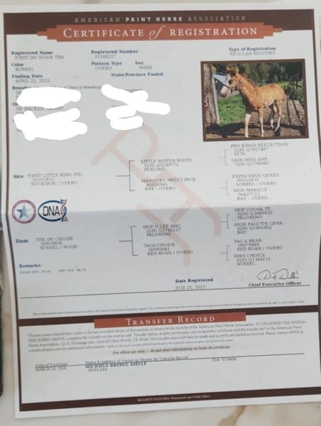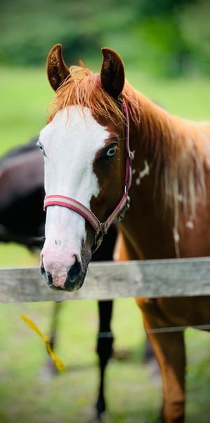 Mare panels tested all negative except for LWO carrier. Very people-oriented mare with a beautiful body (videos via WhatsApp). 2 blue eyes, no defects. Estimated final height is 1.52m. Knows the farrier, shower, traffic, transport, and walks easily onto the trailer. Already lunged with a lungeing girth. Takes everything in stride. Color panels are also present. Well dewormed. Also has equipment available.
