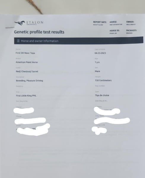 Yegua paneles testeados, todo negativo excepto portadora de LWO. Yegua muy orientada hacia las personas, bonito cuerpo (videos disponibles por WhatsApp). 2 ojos azules, sin defectos. Altura final estimada en 1,52 m. Conoce al herrador, ducha, tráfico, transporte, se sube sola al remolque. Ya ha sido trabajada en la cuerda con cincha de lungueo. Acepta todo con facilidad. Paneles de colores también disponibles. Desparacitada correctamente. También hay equipamiento disponible.