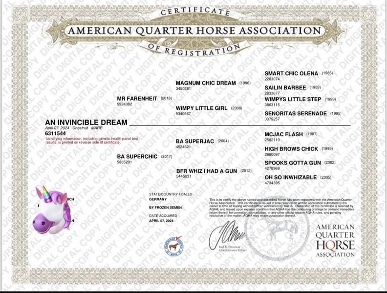 Verkoopadvertentie: Amerikaanse Quarter Horse merrie – Geboren in 2024, voskleur Vader Mr. Farenheit uit de VS is te zien op de laatste foto's (hooggekwalificeerde reininghengst, LTE van meer dan $380.000). Moeder is meerdere keren deelnemer aan de Duitse kampioenschappen. Te koop staat een veelbelovende Amerikaanse Quarter Horse merrie, geboren in 2024. Haar elegante voskleur geeft haar een bijzonder expressief uiterlijk. De jonge merrie toont veel talent en een sterke bereidheid om zich verder te ontwikkelen. Ze noemt het veulen ABC, gaat graag in de trailer en loopt al in alle gangen aan de longe. Ze is alert, toont snel begrip en haar vriendelijke aard maken haar tot een aangename partner voor een ervaren ruiter die haar potentieel verder wil stimuleren. Deze Amerikaanse Quarter Horse merrie combineert typische karaktereigenschappen zoals leergierigheid, intelligentie en robuustheid. Ze is uitstekend geschikt voor de ambitieuze recreatieve ruiter of de sportieve reiningruiter die op zoek is naar een betrouwbare en getalenteerde partner. Bij interesse of voor meer vragen sta ik graag tot uw beschikking. Een bezichtiging is mogelijk op afspraak.