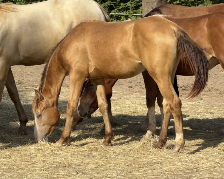 MOBSTERS CHAMPAGNE ist ein ausdrucksstarkes, mega schönes Stutfohlen in der Traumfarbe amber champagne splash mit super toller Abstammung zu verkaufen. Die Kleine ist sehr aufmerksam, aufgeschlossen und selbstbewusst, tritt allem Neuen interessiert entgegen. Geboren am 06.06.2023. Zu erwartendes Endmass 1,43m. Kräftiges Fundament, stabile Knochen und einen tollen Body mit katzenhaften Bewegungen in Sonderlack. Vater: Triple Frozen Dunit Mutter: Mobsters Lil Chic (v. HF Mobster x Einstein)