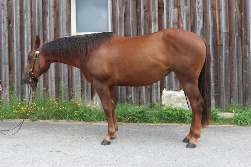 June ist eine super liebe, ehrliche kleine Stute mit großem Herzen. Sie befindet sich zur Zeit in Profiberitt und zeigt sich sehr talentiert. Ihrer Abstammung gemäß eignet sie sich natürlich sehr gut für die Reining, aber auch für andere Disziplinen, da sie sehr gute Gänge besitzt. Sehr gerne in ein Show Home. Sie war noch nie krank und hat eine gute Hufqualität.