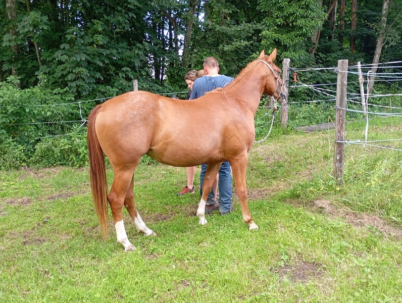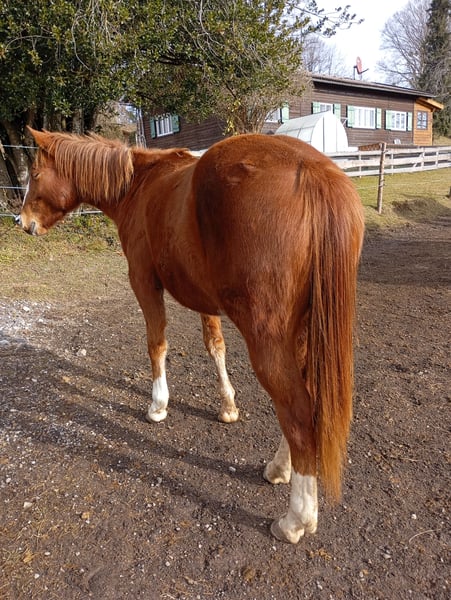 Serafina kam als ein paar Wochen altes Fohlen bei Fuß ihrer Mutter zu uns und ist in unserer Herde zu einer selbstbewussten und freundlichen jungen Stute herangewachsen. Sie ist 5 Panel N/N über die Eltern, beherrscht das Fohlen ABC und benimmt sich anständig bei Hufschmied und Tierarzt. Sie ist flink und wendig und bringt aufgrund ihrer Abstammung sicher Talent für die Cowhorse mit. Ihre Mutter wurde auf der Matese Ranch in Italien gezogen, die bekannt für die Zucht von guten Cowhorse ist. Ihr Vater DARK ICE ist ein Sohn von GUNNER ON ICE und wurde/wird von Markus Schopfer geshowt. Sie ist noch roh, altersentsprechend gut erzogen, waren jetzt ein paarmal mit ihr an der Hand in unserem kleinen Trailparcour, dort macht sie alles unerschrocken mit, es scheint ihr Spaß zu machen. Wird ab jetzt mit Bodenarbeit und anreiten gestartet, Preis steigt mit fortschreitendem Ausbildungsstand Weitere Infos gerne telefonisch: 0174/3028346