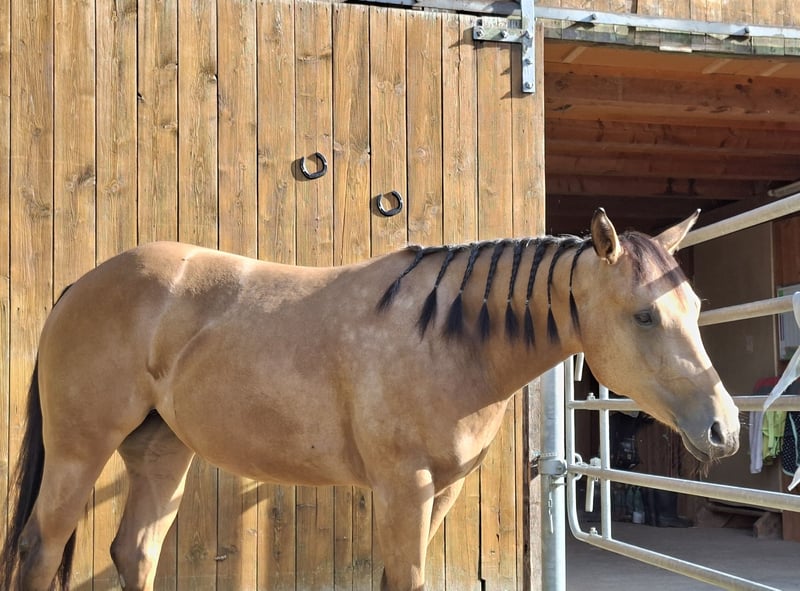 Verkaufe eine 3 jährige Quarter Horse Stute . Sie kennt den Schmied sowie das fahren im Hänge. Braucht aber noch etwas Übung und Routine darin. Kennt Bodenarbeit sowie Reitergewicht. Bin ab und an mal ein paar Runden auf ihr gesessen . Hat sie immer ganz brav im Schritt mitgemacht und war immer sehr brav. Moon lernt sehr schnell und ist sehr anhänglich. Sie ist eine sehr feine, sensible Stute die eine feine und ruhige Hand braucht. Dann geht sie mit einem durch dick und dünn. Sie hatte von Geburt an einen Nabelbruch der aber komplikationsfrei Anfang 2025 operiert und komplett geschlossen wurde. Kein Notberkauf. Gebe sie nur in erfahrene Hände ab sowie nicht in reine Boxenhaltung .