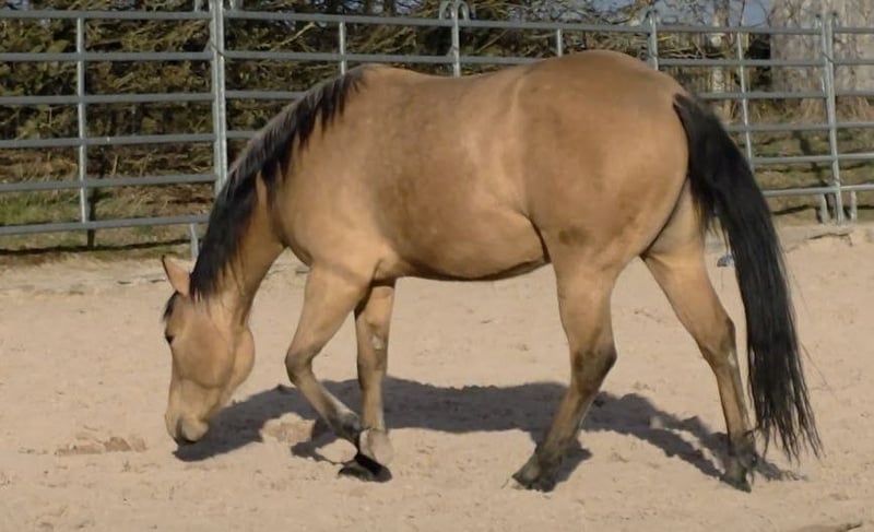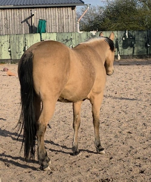 Tamika (HES Sparkling Pearl) Magnifique pouliche quarter mare de 3 ans, de couleur buckskin correcte Née le 18 mai 2023 Issue de notre Dry Little Rocket par ACE Mistr Tinseltown Un mariage absolument réussi, que nous avons répété cette année pour la troisième fois ; la jumelle pleine est attendue pour fin mai. Une jeune jument très typée et également pleine de tempérament. Depuis sa naissance, elle ne cesse de nous faire sourire. Et oui, c’est une jument, une personnalité. Elle est très attachée à l’humain. Elle est encore brute et n’a pas encore été travaillée. Elle accompagne nos juments de reproduction et nos foals, et elle est toujours une excellente partenaire de jeu pour les poulains, très sociable avec les autres chevaux. Elle a une tête particulière, et sait exactement ce qu’elle veut et ce qu’elle ne veut pas. Son prix est actuellement sur demande, car nous envisageons peut-être de la préparer à la monte. Ce travail influencera bien sûr le prix. Pour l’instant, elle est brute, et à part la marche en main sur notre propriété et le parage des sabots, elle n’a reçu aucune autre formation. Elle sera vendue bien sûr avec son passeport, le certificat de conformité (COR) et le rapport de transfert nécessaire. Nous serions ravis de recevoir vos demandes et également votre visite pour faire la connaissance de Tamika.