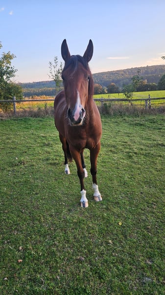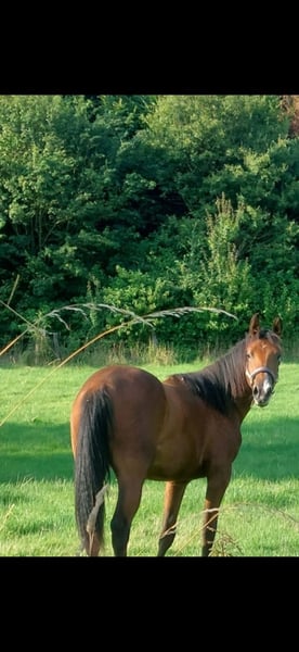 Meine Freundin muss sich schweren Herzens aus gesundheitlichen Gründen von lhrer Quarter Horse Stute trennen. Sugar ist 2/2023 geboren Ihr aktuelles Stockmaß liegt bei ca 1,52m. Zurzeit wird sie durch leichte Bodenarbeit und Spaziergänge auf lhr Leben als Reitpferd vorbereitet. Sugar lasst sich problemlos verladen und kennt es auch schon alleine auf dem Anhänger zu stehen/fahren. Bei uns lebt sie im Offenstall in einer gemischten Herde.