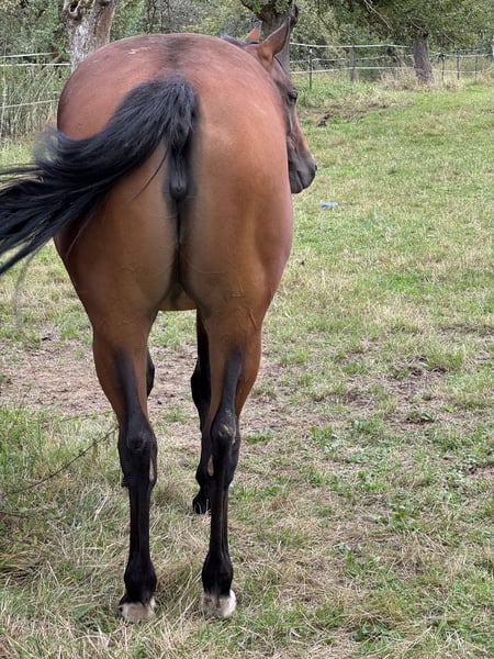 Se ofrece a la venta una bonita yegua Quarter Horse de cría propia. Su padre es ONE SHINEY TREAT, quien fue uno de los tres mejores sementales en la clasificación general en 2023/2024. Su madre es una yegua productora, finalista en la categoría abierta de NRHA y DQHA Futurity. Con leyendas como Shining Spark, Grays Starlight, Peppy San Badger y Doc O Lena, combina lo mejor del antiguo linaje Quarter Horse en una presentación moderna. Por tanto, quienes disfrutan de disciplinas como reining, ranch riding o clases de cow, encontrarán aquí una excelente potranca con las mejores cualidades para destacar en el deporte. ¡Apto para competir en DQHA y NRHA! ‘Joy’ está sana, muy bien socializada, conoce el manejo, el cepillado, la herradura, la carga y algo de trabajo en el suelo. Es muy receptiva con las personas y de trato fácil. Por cese de cría y reducción de la cabaña, se ofrece a un precio atractivo de invierno.