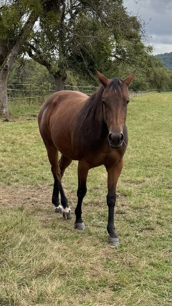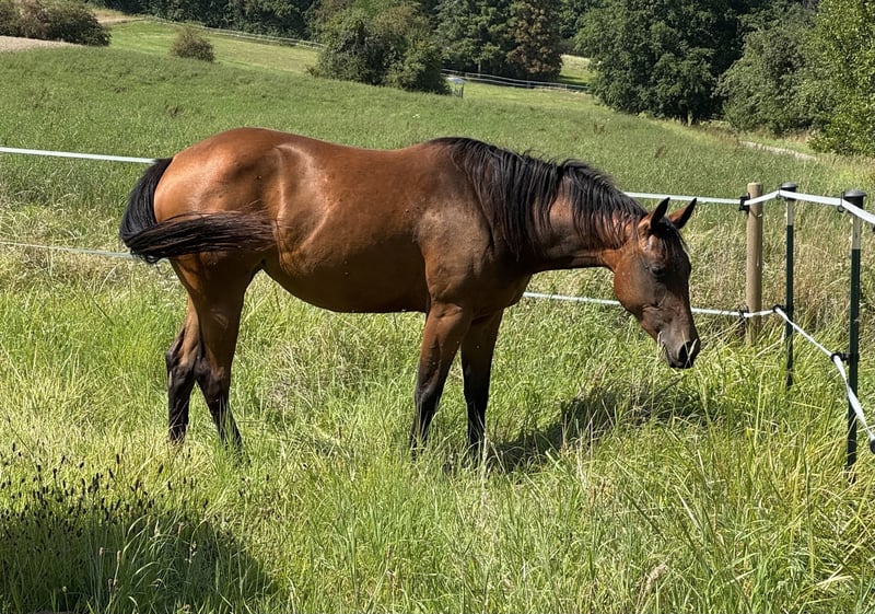 Zum Verkauf steht eine hübsche Quarterhorse Stute aus eigener Zucht. Ihr Vater ist ONE SHINEY TREAT, der in 2023/2024 Top 3 / Top 2 der besten Vererberhengste war. Ihre Mutter ist producing DAM of NRHA& DQHA Futurity finalist Open ! Mit Legenden wie Shining Spark, Grays Starlight, Peppy San Badger, Doc O Lena, vereint sich hier bestes, altes Quarter Horse Blut in moderner Verpackung. Wer also Spass an Reining, Ranch Riding aber auch Cowklassen hat, findet hier einen tolles Nachwuchspferdchen mit allerbesten Vorraussetzungen einmal erfolgreich im Sport zu laufen! DQHA & NRHA startberechtigt! ‚Joy’ ist gesund, bestens sozialisiert, kennt führen, putzen, Hufschmied, verladen und etwas Bodenarbeit. Sie ist sehr aufgeschlossen dem Menschen gegenüber und im Umgang unproblematisch. Wegen Aufgabe der Zucht und Bestandsreduzierung zum attraktiven WINTERPREIS abzugeben.