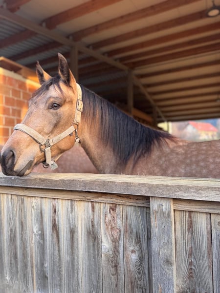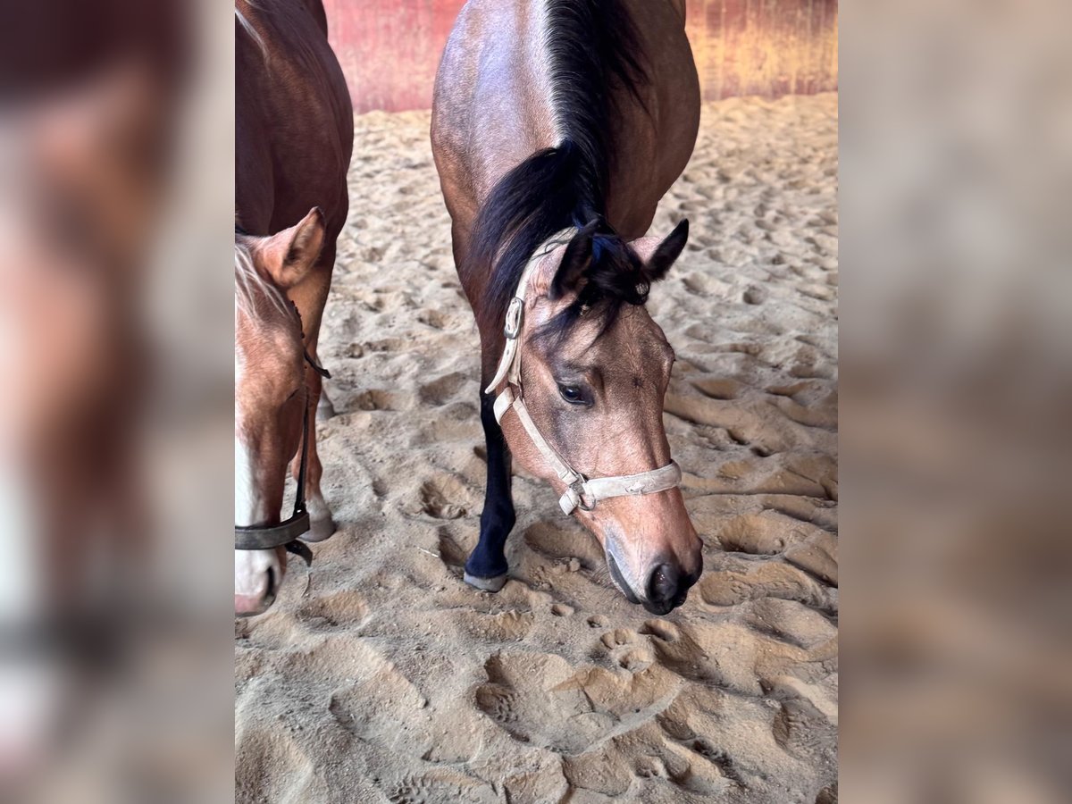 American Quarter Horse Mare – Buckskin, born 2023 For sale is a beautiful American Quarter Horse mare, born in 2023. She features an elegant buckskin coat and currently measures approximately 15 hands. She is ideally suited for reining and demonstrates great talent and willingness to learn. This young mare is a promising partner for riders who value quality and character. She exhibits excellent gaits and smooth transitions both in the paddock and during free movement. She has a lively, curious, yet affectionate personality. She is highly trainable, fully engaged in each training session, and concentrates well. Please feel free to contact me if you are interested or have any further questions.