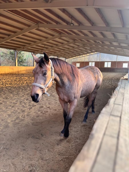 Vendo yegua de American Quarter Horse – color buckskin, nacida en 2023 Se ofrece una hermosa yegua de American Quarter Horse, nacida en 2023. La caballo destaca por su elegante pelaje buckskin y una altura actual de aproximadamente 150 cm. Es ideal para la disciplina de reining y demuestra mucho talento y disposición para aprender. Esta joven yegua es una opción prometedora para jinetes que valoran la calidad y el carácter. En movimiento, tanto en el paddock como en libertad, muestra excelentes pasos y transiciones. Tiene un carácter travieso, curioso y cariñoso a la vez. Posee una gran disposición para aprender, está completamente concentrada y participativa en cada entrenamiento. Para más información o si tiene alguna pregunta, no dude en contactarme.