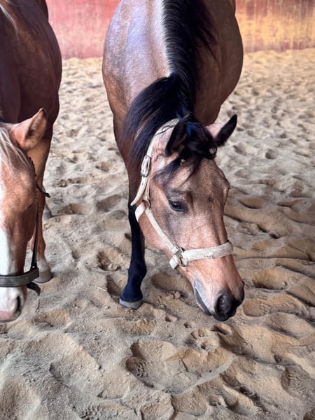 Verkaufe American Quarter Horse Stute – Buckskin, geb. 2023 Zum Verkauf steht eine wunderschöne American Quarter Horse Stute, geboren im Jahr 2023. Das Pferd besticht durch ihr elegantes Buckskin-Fell und ein Stockmaß von derzeit ca. 150 cm. Sie ist optimal für den Reining-Sport geeignet und zeigt viel Talent sowie Lernbereitschaft. Diese junge Stute ist ein vielversprechendes Pferd für Reiter, die Wert auf Qualität und Charakter legen. Sie zeigt in der Bewegung auf der Koppel und beim Freilauf tolle Gangarten und Übergänge. Sie besitzt einen frechen, neugierigen aber liebevollen Charakter. Sie besitzt eine hohe Lernbereitschaft und ist sofort bei jeder Lerneinheit voll dabei und konzentriert. Bei Interesse oder weiteren Fragen stehe ich Ihnen gerne zur Verfügung.