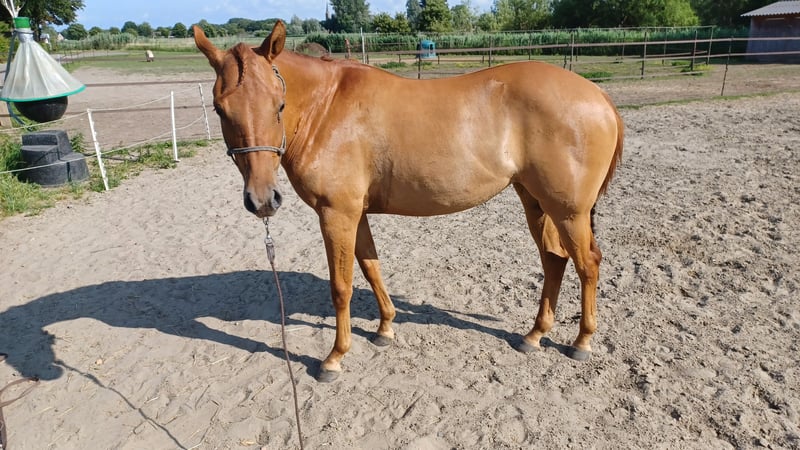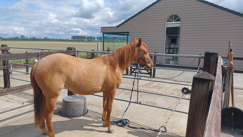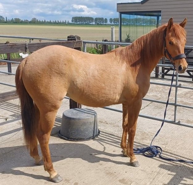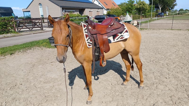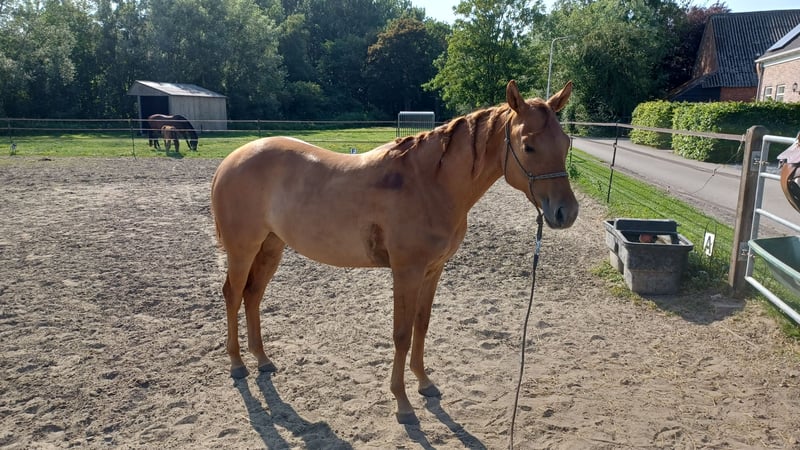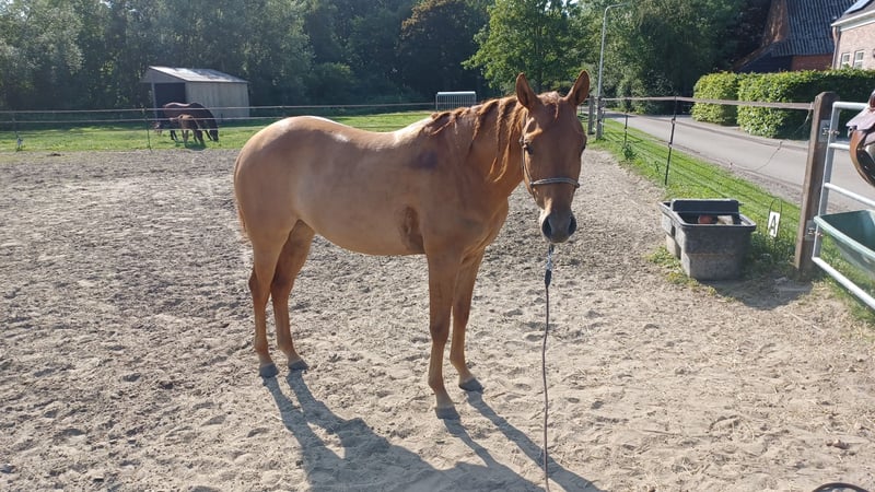 Zeer mooie merrie Geboren op 9/05/2023 Correct op voeten en benen Röntgenologisch goedgekeurd (zonder opmerkingen) voor sport en fokkerij op 12/06/2025 Panel 6 N/N Red Dun kleur NRHA competitie licentie Komt dagelijks in de hand Kent het logeren Is het zadel gewoon Klaar om verder op te leiden Vader is My Royal Gun (Gunners Enterprise) (Colonels Smoking Gun x Be Aech Enterprise) die met Gina Maria Schumacher succesvol was in de sport. De moeder is een rechtstreekse Hollywood Dun It x Topsail Whiz. Grootmoeder Serendipity Whiz was zeer succesvol in de reining sport Voor meer info kan u een bericht sturen via de chat.