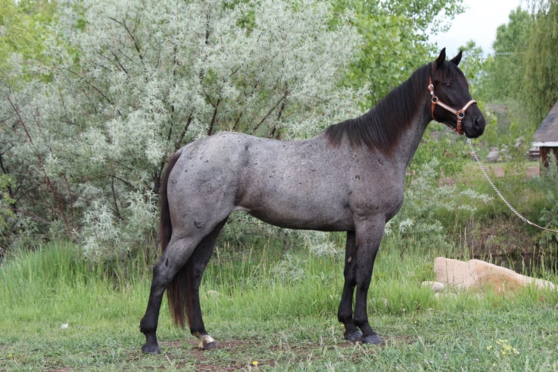 AVAILABLE ON ONLINE HORSE AUCTION AT www DOT MagicHorseAuction DOT com BIDDING OPEN NOW thru TUESDAY | JUNE 24th - BUY IT NOW AVAILABLE! *Final price will be determined on auction site* CONSIGNOR CONTACT INFO: Dynamite Horses 970-632-3644 LOCATION: Fort Collins, CO " MMB HEROS MAID — “Classy” Meet Classy, registered as MMB HEROS MAID—an absolutely stunning blue roan mare who embodies elegance, athleticism, and heart. With strong foundation training and a calm, intelligent demeanor, Classy lives up to her name in every way. This gorgeous mare moves with grace and presence. She is soft and collected in all three gaits—walk, jog, and lope—and has a phenomenal stop and rollback. She’s learning to respond to both leg and voice cues, making her a pleasure to ride for anyone looking to continue her development across multiple disciplines. Classy has excellent ground manners and a thoughtful, respectful attitude. She has been introduced to Parelli natural horsemanship and responds beautifully. She will side-pass up to the mounting block, perform a spin, free lunge, or lunge on a line with ease. She also walks, jogs, and lopes in-hand, showcasing her willingness and trainability. In addition to her western training, Classy has been lightly started in English. She’s working over cavalettis and is learning to carry herself correctly, building both muscle and confidence under a new type of saddle. Her versatility makes her a strong candidate for riders interested in competing or simply enjoying multiple disciplines. Classy has also seen the sights—she’s been ponied up into the mountains, taken on trail rides both in town and along the scenic Poudre Trail. She crosses water, steps over bridges, and handles traffic without issue. She’s steady around dogs, runners, bicycles, and strollers, making her a trustworthy partner for any adventure. Whether you’re looking for a flashy prospect with a great mind or a reliable mare with a foundation in both English and Western disciplines, Classy offers the best of both worlds. She’s a rare combination of beauty, brains, and athletic potential—all wrapped up in a striking blue roan coat. Don’t miss the chance to make Classy your next standout partner. She’s ready to shine in the arena, on the trail, or anywhere your journey takes you. Located in [Fort Collins] Contact: [970-632-3644] Videos available above