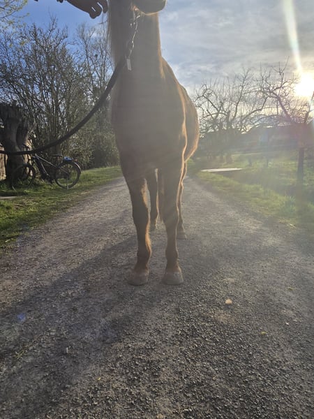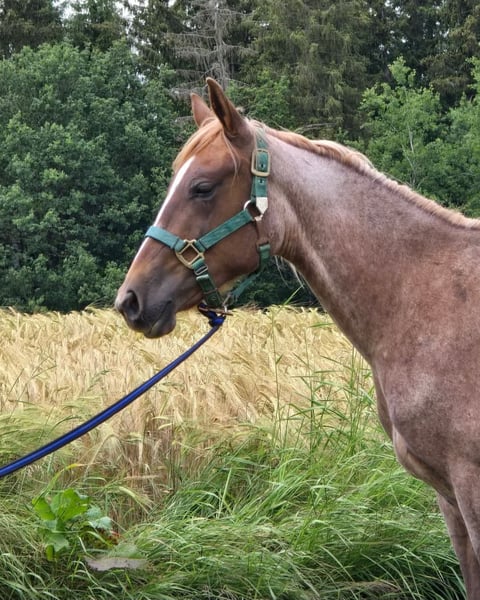 Qualitätsvolle Quarter Horse Nachwuchsstute – mit besonderem Charakter! Mit „El Toptime“ geben wir eine junge Quarter Horse Stute ab, die uns vor allem durch eines überzeugt hat: ihren außergewöhnlichen Charakter. Geboren am 08.06.2022, haben wir sie direkt vom Züchter aus Frankreich geholt und seitdem mit viel Ruhe und Gefühl aufgezogen und vom Boden aus gearbeitet. Sie durfte in ihrem Tempo wachsen und sich entwickeln – genau das spiegelt sich heute in ihrem Wesen wieder. El Toptime ist ein Pferd, das man nicht jeden Tag findet: sehr menschenbezogen, ehrlich und mit einem „Herz aus Gold“. Sie sucht aktiv die Nähe, folgt ihrem Menschen aufmerksam und bleibt auch in neuen Situationen ruhig und gelassen. Abstammung: Woodys Time × Blazing Topsail → solide Grundlage für eine vielseitige Zukunft Auch im Herdenverband zeigt sie sich absolut unkompliziert: Sie kennt sowohl gemischte Gruppen als auch die Haltung in einer Stutenherde (aktuell 7 Pferde) und bewegt sich dort im mittleren Rang. Hier immer im Offenstall gehalten. Eckdaten: ▪️Stute in Red Roan ▪️ca. 1,36 m Stockmaß aktuell leicht überbaut, wächst gerade ▪️5-Panel N/N ▪️bisher nie krank gewesen ▪️kleine Fehlstellung vorne rechts ( keine Einschränkungen) der Huf ist leicht nach außen gestellt. ▪️noch nicht angeritten ▪️kennt es als Handpferd mit ins Gelände zu gehen. Die Entscheidung fällt uns nicht leicht aber wir hatten einfach auf ein paar Zentimeter gehofft – daher suchen wir nun einen passenden Menschen, der genau ein solches Pferd zu schätzen weiß. Wir wünschen uns für Sie das richtige Zuhause, in dem ihr Charakter gesehen wird und sie weiter gefördert wird. Absolut kein Notverkauf!