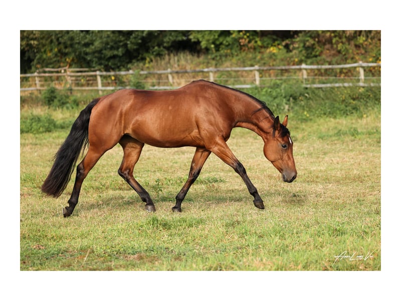 🌟 Quarter Horse Stute „Sally“ – talentierte junge Reining & Ranch Riding Nachwuchsstute 🌟 Rasse: American Quarter Horse Alter: 4 Jahre Farbe: Bay (Braun) Stockmaß: ca. 146 cm Abstammung: V: JF What A Ruf Juice M: direkte Smart Chic Olena-Tochter 🐴 Abstammung & Pedigree Vater – JF What A Ruf Juice Ein leistungsstarker Sohn des legendären Ruf Dunit, bekannt für seine Vererbung von Rittigkeit, Talent und starkem Mind. Seine Nachkommen überzeugen durch ihren korrekten Körperbau, gute Manier und hervorragendes Potential im Reining-Sport. Mutterlinie – Smart Chic Olena Sallys Mutter ist eine direkte Tochter von Smart Chic Olena – einem der einflussreichsten Hengste der Reining- und Cowhorse-Szene überhaupt. Smart Chic Olena ist NRHA Hall of Fame Mitglied, NRHA Million Dollar Sire und AQHA World Champion in Reining und Cowhorse. Seine Nachkommen sind weltweit für ihre Vielseitigkeit, Rittigkeit und ihren „Will to Please“ bekannt. ✨ Über Sally Sally ist eine charmante, fein zu reitende 4-jährige Stute, die dieses Jahr ihre ersten Turniererfahrungen auf EWU-Shows gesammelt hat. Sie ist im EWU Jungpferdeprogramm einbezahlt und zeigt bereits jetzt viel Talent, besonders in Reining und Ranch Riding. Sie ist verladefromm, schmiedefromm und absolut unkompliziert im Umgang – keine Unarten, stets freundlich und motiviert bei der Arbeit. Mit ihrer Abstammung, ihrem Arbeitseifer und ihrem guten Fundament ist sie das perfekte Pferd für jemanden, der ein junges, talentiertes Pferd weiter fördern möchte. ❤️ Ich wünsche mir für Sally ein förderndes Zuhause, wo ihr Potenzial in Reining oder Ranch Riding weiterentwickelt wird. Sie bringt alle Voraussetzungen für eine erfolgreiche sportliche Zukunft mit – und ist gleichzeitig eine echte Partnerin mit Herz.