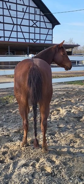 Zum Verkauf steht die bildhübsche Quarter Horse Stute Dun It For June, geboren am 25.03.2022, in der Farbe Sorrel mit einem aktuellen Stockmaß von ca. 146 cm. Sie ist korrekt gebaut, kompakt und ausgewogen bemuskelt und überzeugt durch ihre harmonische Erscheinung. Die Stute ist gesund und 5-Panel n/n getestet. June besitzt einen ganz besonders lieben und angenehmen Charakter. Sie ist sehr menschenbezogen, verschmust, zutraulich und stets bemüht, alles richtig zu machen. Im Umgang zeigt sie sich unkompliziert, vertrauensvoll und super brav, was sie zu einer angenehmen Partnerin im täglichen Training macht. Sie ist in der Herde aufgewachsen, kennt sowohl Offenhaltung als auch Paddockbox und ist bestens sozialisiert. Tierarzt und Hufschmied sind ihr vertraut, sie ist geimpft und regelmäßig entwurmt. Insgesamt präsentiert sie sich gut erzogen, gepflegt und altersgerecht ausgebildet. Dun It For June verfügt über gute, bequeme Gangarten und wurde schonend sowie fair eingeritten. Sie befand sich ein Jahr im professionellen Beritt, kennt alle wichtigen Basics und bringt ein sehr gutes Reiningpedigree (Dun It for Whizkey x Doctor In Diamonds) mit. Dadurch ist sie bestens geeignet für Reining, Ranch Riding sowie weitere Disziplinen im Westernsport. Die Stute ist in die EWU Jungpferdeprogramme einbezahlt und könnte bereits in diesem Jahr in Jungpferdeklassen vorgestellt werden. Ob als zukünftiges Showpferd oder als hochwertiger Freizeitpartner - mit ihrem Talent, ihrer Einstellung und ihrem Charakter ist sie ein echtes Versprechen für die Zukunft.