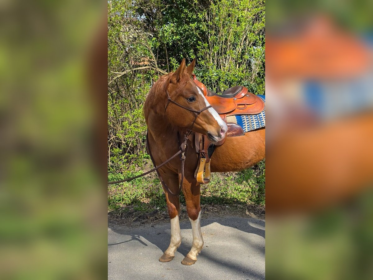 Spook N Honey - bildhübsche Jungstute, 2022 geboren mit einem geschätzten Endmaß von 150 cm, mit einem Charakter zum Dahinschmelzen. Sie kommt sofort wenn ihr Mensch auf die Weide kommt, lässt sich brav händeln und ist immer freundlich und aufgeschlossen. Die Stute durfte in Ruhe in einer kleinen Stutenherde im Offenstall aufwachsen. Kennt aber auch Box. Sie befindet sich in der Grundausbildung und ist leicht angeritten. 1- Jährig hat sie den Stadt&Dorf Trail gelassen gemeistert und 2 Jährig den Extrem Trail. Auch Anhängerfahren kennt sie und ist brav beim Tierarzt und Hufschmied. Honey weiß sich zu präsentieren. Eine vielseitige, liebe Partnerin, die sowohl im Sport als auch in der Freizeit begeistert wird!. Sie besitzt eine tolle Cutting/Allround Abstammung und wird mit vollen AQHA Papiere abgegeben. Eine klinische AKU wird im Rahmen des Verkaufes von der Züchterin in Auftrag gegeben. Ihr Preis steigt bei zunehmendem Ausbildungsstand.