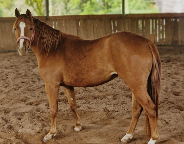 Shock In Love - eine bildhübsche und ausdrucksstarke Quarter Horse Stute, geboren im Mai 2022, mit einem geschätzten Stockmaß von ca. 150 cm. Sie besticht nicht nur durch ihr korrektes Gebäude und ihre solide Entwicklung, sondern auch durch ihren sensiblen und menschenbezogenen Charakter. Diese junge Stute ist gesund, regelmäßig geimpft und entwurmt, schmiede- und verladefromm sowie bestens vertraut mit Offenstall- und Boxenhaltung. Sie kennt die Herdenhaltung, zeigt sich dort ranghoch, aber sozial und klar im Verhalten. Shock In Love verfügt über einen starken Charakter, gepaart mit einem liebevollen, verschmusten Wesen. Sie ist sehr umgänglich, gut erzogen, sensibel und lernt schnell. Ihre hohe Auffassungsgabe und ihr Arbeitseifer machen sie zu einem echten Talent für den Westernsport. Shock In Love ist wendig, reaktionsschnell und bringt bereits jetzt viel Potenzial mit, das sich unter gezielter Förderung weiter entfalten wird. Abstammungsmäßig geht sie auf bewährte, alte Linien zurück, mit Schwerpunkt auf Reining und Cutting - eine interessante genetische Grundlage für eine Karriere im Turniersport. Shock In Love wurde bislang schonend angeritten und kennt die Grundgangarten unter dem Reiter. Mit ihrer Einstellung und ihrem Talent ist sie prädestiniert als Nachwuchspferd für den ambitionierten Freizeitreiter oder den Einstieg in den Turniersport. Alle Papiere der AQHA sowie der Equidenpass liegen vollständig vor. Shock In Love vereint Qualität, Charakter und sportliches Potenzial - eine vielversprechende junge Stute, die ihren Weg gehen wird.