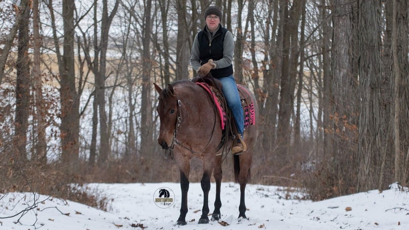 ⚜️ 𝓗𝓮𝓻𝓲𝓽𝓪𝓰𝓮 𝐖𝐢𝐧𝐭𝐞𝐫 𝓒𝓵𝓪𝓼𝓼𝓲𝓬⚜️ Happening now thru MONDAY | DECEMBER 29th - Available EXCLUSIVELY on HorseBid's website! For more details and to register visit: www.Horsebid.com CONSIGNOR CONTACT: North Wind Farm 330-473-3521 LOCATION: Fredericksburg, OH BREED: quarter horse REGISTERED: No COLOR: bay roan HEIGHT: 14.1 AGE: 4 GENDER: Mare Ember is a 4 yr old grade quarter horse mare standing at 14.1hh. She is well trained to ride! Ember is very sweet and gentle. She has good manners! She is a great trail horse and takes new places in stride! She stands nicely to be groomed and for tacking up! She will also stand when getting bathes! She can be turned out with other horses and is easy to catch! She rides great in the arena, she has easy cues and responds well! She has A smooth and is easy to ride walk, trot, lope! She has a nice neck rein and a side pass! She can be rode bareback and bridles! She has a lot of trail experience! She rides through creeks, through brush, and is surefooted! She doesn’t mind the tarp or the ball! She is used to being around dogs and atvs! She can be rode out in the traffic and is traffic safe! She is confident and easy going! Ember is the same horse everyday. She is cute, safe, and so much fun to ride! Ember is looking for her forever person, reach out with any questions you might have about her! ⭐️North Wind Farm is renowned for its quality trail and all-around horses. Our horses are versatile and can excel in any discipline, making them perfect for riders of all levels. Whether you're looking for a reliable trail companion or a horse that can perform in various disciplines, North Wind Farm has the perfect match for you. Our commitment to excellence and passion for equine care ensures that each horse is well-trained, healthy, and ready to meet your needs. Contact us: Tim (330)600-8840 Lisa (330)473-3521