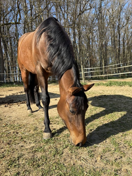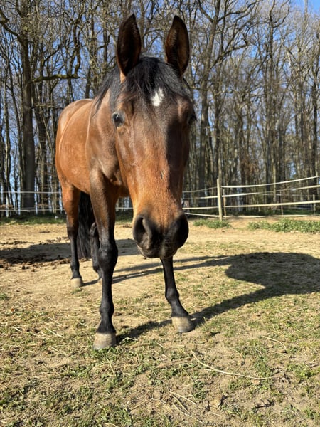 Liebe vierjährige Quarter Horse Stute mit Papieren sucht ein neues, liebevolles Zuhause. Elli hatte leider aufgrund eines Weideunfalls ein angerissenes Kreuzband, welches operativ behandelt wurde. In einer zweiten Operation wurden noch verengte Dornfortsätze am Rücken behandelt (kissing spines). Mit viel Arbeit könnte sie laut Arzt ggf. auch wieder Reitpferd/Freizeitpferd werden. Dazu muss sie allerdings konsequent gearbeitet und Muskelaufbau betrieben werden, noch läuft sie nicht taktrein. Dafür fehlt mir leider schweren Herzens die Zeit. Sie ist klar im Kopf und möchte noch kognitiv gefördert werden. Spaziergänge und Bodenarbeit sind in jedem Fall möglich! Elli lässt sich gut in die Herde integrieren und ist verträglich mit anderen Pferden. Sie wird nicht an einen Händler abgegeben! Ich wünsche mir, dass sie ein tolles Zuhause findet, indem sie bleiben darf und einen Menschen, der ihr noch eine Chance geben möchte. Ich gebe sie nur in beste Hände ab. Platz vor Preis!