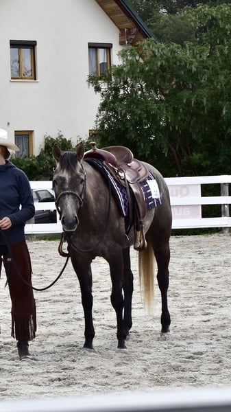 Zum Verkauf steht eine 2021 geborene Quarter Stute in herausstechender Optik. MILEY ist eine verlässliche und talentierte Stute, die sich sowohl für den Freizeitreiter, als auch für den ambitionierten Turnierreiter perfekt eignet. Sie ist solide Reining grundausgebildet und wurde im letzten Jahr schonend freizeitmäßig von Anfängern und Fortgeschrittenen geritten und eher in Richtung Ranch Bewerbe trainiert, wo sie auch Potenzial zeigt. Ausreiten, Arbeit am Platz, Bodenarbeit - Miley zeigt sich bei jeglicher Arbeit von ihrer besten Seite. Herdenverträglich und umgänglich. Kennt das Hängerfahren, Maschinen, etc. auch beim Tierarzt brav. Koppelgang ist sehr wichtig für sie. Ist für Anfänger geeignet, es sollte aber trotzdem eine erfahrene Person unterstützen. Röntgenbilder vom Frühjahr 2025 ohne Befunde vorhanden. Verzeiht Fehler, braucht aber grundsätzlich einen einfühlsamen Reiter, da sie mit dauerhaft übermäßigem Druck nicht umgehen kann. Stand in den letzten Monaten aus Zeitmangel sehr viel, das ist auch der Grund, weshalb sie verkauft wird. Sie ist aber auch nach längerer Pause sehr brav, einfach aufsatteln und losreiten. Kontakt unter 0670/2061131 Sie wird nur an Bestplatz verkauft, kein Notverkauf. Nur bei ernsthaftem Interesse. Ein Probereiten ist gegen eine Gebühr von 50€ gerne möglich. Wird bei Kauf natürlich gegengerechnet.