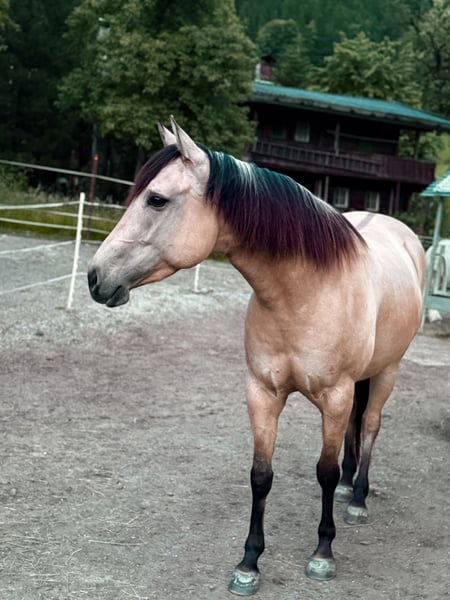 Schweren Herzens muss ich mich leider von meiner geliebten Quarter Stute trennen! Rosé liebevoll „Rosi“ genannt wird im Juni 5 Jahre alt. Sie ist seit 4 Jahren in meinem Besitz und wurde seitdem von mir (teilweise auch Unterstützung einer Trainerin) vom Boden aus trainiert. Dabei zeigte sich schon von klein auf, dass sie einen sehr hohen Bewegungsdrang hat und auch gearbeitet werden will. Sie ist immer die erste die am Zaun steht und regelrecht wartet, bis man etwas mit ihr macht. Charakterlich ist sie sehr liebevoll und intelligent aber dennoch auch immer für eine Diskussion bereit und fragt gerne mal nach 😅 Rosi stand bei mir Zuhause 24/7 im Offenstall mit 2 anderen Stuten, dort war sie eher rangmittig unterwegs. Sie befindet sich seit letztem Jahr in Profi Beritt, dort steht sie zur Zeit in einer Box. Für ihr zukünftiges Zuhause kommt für mich aber ausschließlich ein Offenstall oder Box mit täglichem Weidegang in Frage, da sie es von klein auf so kennt und dementsprechend auch ausgeglichener ist. Sie wurde unter dem Sattel erst spät gestartet, weil mir das persönlich sehr wichtig war. Unter dem Reiter zeigt sie sich sehr mutig und intelligent. Rosi benötigt aber aufgrund ihres Alters einen sehr selbstbewussten, geübten Reiter mit einer feinen Hand der ihr die nötige Sicherheit beim Reiten vermittelt. Sie war auch schon öfters alleine im Gelände unterwegs, was sie brav gemeistert hat mit entsprechender Sicherheit des Reiters. Leider harmoniert es bei uns nicht und ich kann ihr nicht die Sicherheit geben die sie vom Sattel aus benötigt. Deshalb muss ich mich, so schwer es mir auch fällt, von meiner Rosi trennen. Mit dem richtigen Menschen an ihrer Seite geht sie aber mit einem durch dick und dünn. Videos auf Anfrage Preis VHB Bei Fragen könnt ihr euch sehr gerne melden!