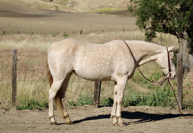 "AVAILABLE ON ONLINE HORSE AUCTION AT www DOT PlatinumEquineAuction DOT com BIDDING OPEN NOW thru SUNDAY | MAY 10TH! *Final price will be determined on auction site* CONSIGNOR CONTACT INFO: Cheyenne Rey 831-537-8746 LOCATION: Bitterwater, CA Gemma is a 5-year-old perlino dappled mare with two striking blue eyes and a look that gets noticed everywhere she goes. She stands right at 15 hands and is built correctly with a balanced, athletic frame. She’s the kind of mare that’s just as pretty standing in the pasture as she is under saddle. What really makes Gemma special is her personality. She’s kind, friendly, and genuinely enjoys being around people. She’s easy to catch, meets you at the gate, and has a quiet, steady way about her. She is not marish and stays consistent in her attitude no matter the day. She’s the same horse every time you pull her out. Gemma is very smart and easy to train. She picks things up quickly and, more importantly, remembers what she learns. You can show her something once and the next time she comes back like she’s been doing it for years. She has a willing mindset and tries to do what’s asked without getting frustrated or nervous. She’s been ridden out on trails, along roads, and on the beach. She handles new things calmly and goes where she’s asked without hesitation. She doesn’t get worked up and has a steady, honest feel to her that makes her enjoyable to ride outside the arena. In the arena, Gemma is soft and naturally carries herself low-headed. She neck reins, has a solid stop, and moves off your hand and leg easily. She transitions smoothly through her walk, trot, and lope and will hold a nice, even circle. She also has a soft, easy reverse and a good foundation that you can take in any direction. On the ground, she’s just as easy. She stands tied quietly, hauls well, and is good for bathing. She’s great for the farrier and handles her feet without any fuss. Overall, she’s respectful, well-mannered, and simple to be around. Gemma is a really nice young mare with a solid start and a great mind. Whether you want a dependable trail horse or something to continue on with in a specific discipline, she’s ready to go on and do the job. She is located in Bitterwater, CA. For more information or to schedule a time to come see her please contact Cheyenne at 831-537-8746.