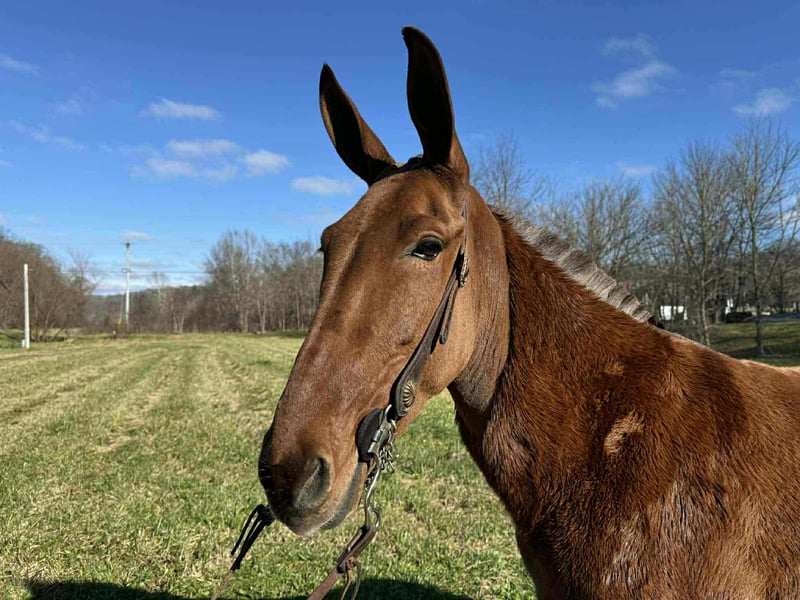 ONLINE AUCTION Place your bids at www.PlatinumEquineAuction.com Starting Bid $3500 Auction ends January 25th, 2026 Need a new saddle? Check out White Rock Saddles on our website or Facebook Jolene is a gorgeous 5 year old Molly mule standing 15 hands tall. This mule is unbelievably gentle and has a one in a Million personality. If you need a confidence booster here she is! Looks, loving and loyalty In one big good looking mule. I can’t count the mules we’ve had or been around but what I know for a fact that a mule with her mind is rare. Jolene trail rides in groups of any size or out alone with zero issues. She’s traffic safe and goes where you point her with out hesitation. She’s calm, willing and loves to please her person. If you’re serious about a good mule here she is! Located in Grassy Creek, KY. For more info contact Zach with Brandenburg Stables 513-508-3684. ONLINE AUCTION Place your bids at www.PlatinumEquineAuction.com Starting Bid $3500 Auction ends January 25th, 2026 Need a new saddle? Check out White Rock Saddles on our website or Facebook