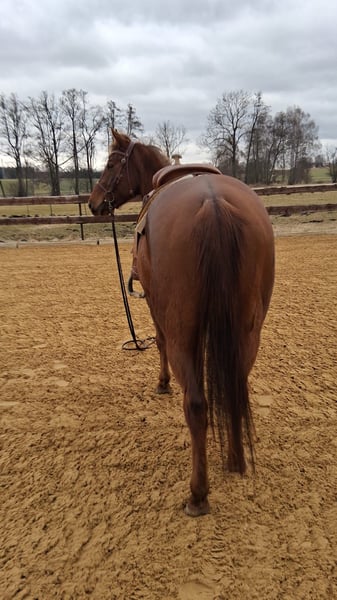 Joy Tee Rey ist eine bildhübsche Quarter Horse Stute, geboren am 21.03.2021, mit einem Stockmaß von ca. 153 cm. Sie ist korrekt gebaut, ausbalanciert bemuskelt und gesund, mit acht Röntgenbildern aus 2024. Resi ist 6-Panel n/n getestet und regelmäßig geimpft sowie entwurmt. Die Stute lebt im Offenstall in einer gemischten Herde, kennt aber auch Box mit Paddock. Charakterlich ist sie sensibel, menschenbezogen und neugierig, dabei eher ruhig und etwas faul. Sie möchte regelmäßig gearbeitet werden, braucht aber die richtige Dosis Druck bei der Arbeit, da sie bei zu viel Druck spannig wird. Nicht für Anfänger geeignet - ideal für erfahrene Reiter mit Jungpferdeerfahrung. Resi verfügt über eine solide Westerngrundausbildung, befindet sich jetzt in Vollberitt. Sie kennt Gelände, war als Handpferd und im Schritt unterm Sattel mit im Gelände. Die Stute wurde viel vom Boden aus gearbeitet. Dank ihrer sehr guten Cutting-Abstammung ist sie bestens für Cutting und Ranch-Klassen geeignet. Ihr Vater ist der erfolgreich geshowte Titanium Toy, ein Metallic Cat Sohn. Mütterlicherseits ist sie eine Dual Rey Enkelin. Mit AQHA-Papieren. Joy Tee Rey ist das perfekte Pferd für jemanden, der ein junges, herausforderndes Pferd fördern und weiterentwickeln möchte.