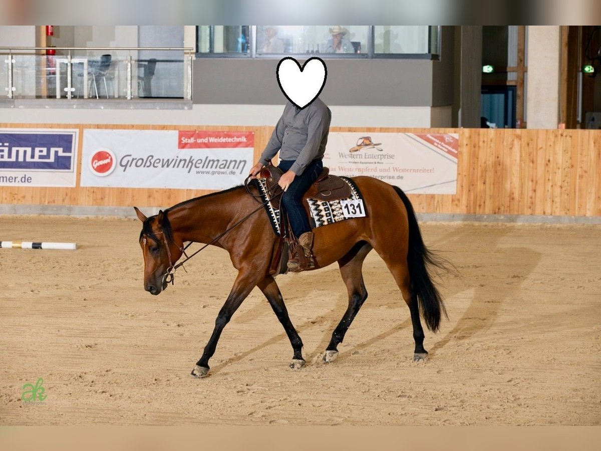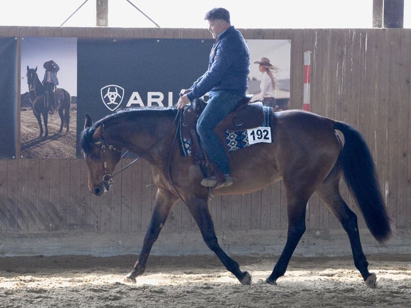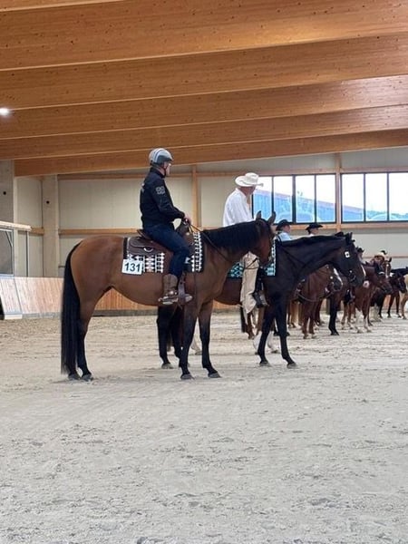 N Green Somnia ist eine 2021 geborene Quarter Horse Stute in der Farbe Bay mit einem Stockmaß von ca. 165 cm. Sie ist bildhübsch, großrahmig und elegant gebaut, dabei sehr gut entwickelt und besitzt ein äußerst stabiles Fundament, wodurch sie auch größere Reiter*innen problemlos abdeckt. Ihr korrektes Exterieur und ihre harmonische Erscheinung machen sie zu einem echten Hingucker. Charakterlich ist sie eine absolute Ausnahme: sehr ruhig, menschenbezogen, stets freundlich, verschmust und im Umgang vollkommen unkompliziert. In der Herde ist sie rangniedrig, lebt aktuell im Offenstall in gemischter Herde, kennt aber auch Boxenhaltung und passt sich neuen Situationen problemlos an. Die Stute ist gesund, regelmäßig geimpft und entwurmt sowie schmiede- und verladefromm. Bei der Arbeit zeigt sie sich stets motiviert, lernt sehr schnell und bringt konstant Leistung, egal ob im täglichen Training oder auf dem Turnier. Sie besitzt keine schlechten Eigenheiten und zeigt sehr viel Potenzial für den Turniersport. Aufgrund ihres Alters ist sie kein typisches Anfängerpferd, sondern ein erstklassiges Nachwuchspferd für Pleasure und Allround, das weiterhin gefördert werden sollte. Somnia befindet sich in Profiberitt bei Danny Reinkehr und wurde im letzten Jahr in EWU Jungpferdeprüfungen in Basis und Trail sowie in der Pleasure vorgestellt. Sie ist in das EWU Jungpferdeprogramm sowie in die DQHA Futurity einbezahlt, zudem gibt es einen Gutschein für einen Start auf einem Futurity-Turnier. Sie war mehrfach auf Reitkursen bei namhaften Trainern wie Henning Daude, Alexander Eck und Mateo Toniollo und kennt auch Ausritte im Gelände in der Gruppe. Alle Papiere der AQHA sowie der Equidenpass sind selbstverständlich vorhanden. Mit ihrer hervorragenden Abstammung, ihrem Talent, ihrem guten Fundament und ihrem liebevollen Charakter ist sie das perfekte Pferd für jemanden, der eine junge, talentierte Partnerin sucht und sie weiter fördern möchte.