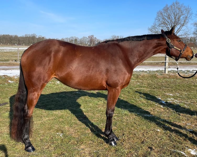 Pretty Diamond Eyez, aka Hazel, ist eine super talentierte Hunter Under Saddle/Allaround Quarter Horse Stute mit bester Abstammung, die ich durch die Veränderung meiner Lebensumstände leider verkaufen muss. Sie wurde von uns als Fohlen in den USA gekauft und nach Deutschland importiert. Sie durfte hier dann in Ruhe groß werden, bevor sie auf ihr Reitpferdeleben vorbereitet wurde. Hazel ist sehr sozial mit anderen Pferden, hat Geländeerfahrung, kennt Bodenarbeit und wird auf dem Platz und in der Halle geritten. Sie ist in das Jungpferdeprogramm der EWU einbezahlt und bereit für neue Herausforderungen. Hazel wurde bisher noch nicht auf Turnieren vorgestellt. Sie steht aktuell im Training bei Alexander Eck und kann dort bei ernsthaftem Interesse besichtigt und Probe geritten werden. Aufgrund ihres Alters ist Hazel kein Anfänger- oder Jugendpferd. Mit ihrer Abstammung ist sie ein Juwel für die spätere Zucht nach der Reitpferdekarriere. Vater: Easy On The Eyez AQHA World Champion NSBA BCF Ltd NP Champion Reserve Congress Champion Mutter: Spurz N Diamonds Congress Champion 2 x NSBA World Champion 3 x NSBA BCF Champion HUS Reichert Champion Hazels Halbbruder mütterlicherseits, „The Luxury Line“, ist AQHA World Champion und Congress Champion.