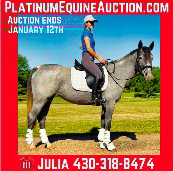 ONLINE AUCTION Place your bids at www.PlatinumEquineAuction.com Starting Bid $3500 Auction ends January 12th, 2024 Need a new saddle? Check out White Rock Saddles on our website or Facebook! Cheyenne is a stunning 15.2-hand 2021 Model blue roan AQHA mare with an athletic build, excellent legs, and a calm, friendly temperament. This young mare is exceptionally versatile, already riding English, Western, bareback, and even bridleless with ease. She’s traffic-safe, trail-approved, and ready to excel in any direction. Cheyenne has very smooth gaits, including her slow jog and rocking chair canter, make her a joy to ride. She lopes circles, taking the correct leads both ways, sidepasses, naturally collects, and is soft in the mouth. Extremely broke and responsive, she’s been exposed to balls, tarps, and other desensitization work without batting an eye. On the trail Cheyenne is a safe and surefooted mount. Our entire family has enjoyed trail riding here. She will go up and down steep inclines, and over any type of terrain. From rocky rugged trails to sand to mud, she can handle it all. She is calm and collected in any situation and is a trusted ride anywhere you take her. She will ride alone or with a crowd, in the front or the back. This mare is as reliable as they come—she doesn’t spook and has a calm demeanor that makes her suitable for youth or beginner riders to finish with confidence. Whether you’re looking for a dependable trail partner, a versatile riding horse, or a future show prospect, Cheyenne is the total package. She rides the same everytime whether you ride her daily or once a month. Cheyenne is barefoot, sound, and requires no maintenance. Her teeth and hooves were recently done, and she’s up-to-date on vaccinations and deworming. She loads and hauls wonderfully, loves a bath and stands quiet for the farrier and in the cross ties. She is used to all the chicken, dogs and cats that run in and out of the barn with her. she never pays them any mind and enjoys their company. Cheyenne is the type of horse that will make you fall in love with her. She is a pleasure to have in our barn, a joy to ride and so much fun to be around. Don’t miss this opportunity to own a beautifully built, exceptionally broke, and wonderfully dependable young mare. Cheyenne is ready to be your next partner! Contact Julia Gonzalez 430-318-8474. Located in Texarkana, TX. ONLINE AUCTION Place your bids at www.PlatinumEquineAuction.com Starting Bid $3500 Auction ends January 12th, 2024 Need a new saddle? Check out White Rock Saddles on our website or Facebook!