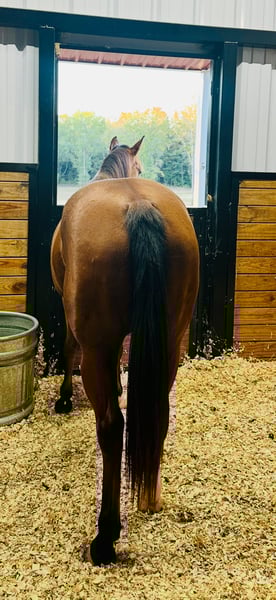 Clean legs and sound. She is ready to find her new show partner and make it big in the ring. She has been handled daily, lunges, loads and hauls. She’s turned out with a mare and gelding and acts like the head mare. Super easy to handle, be around, and enjoys exploring her surroundings.