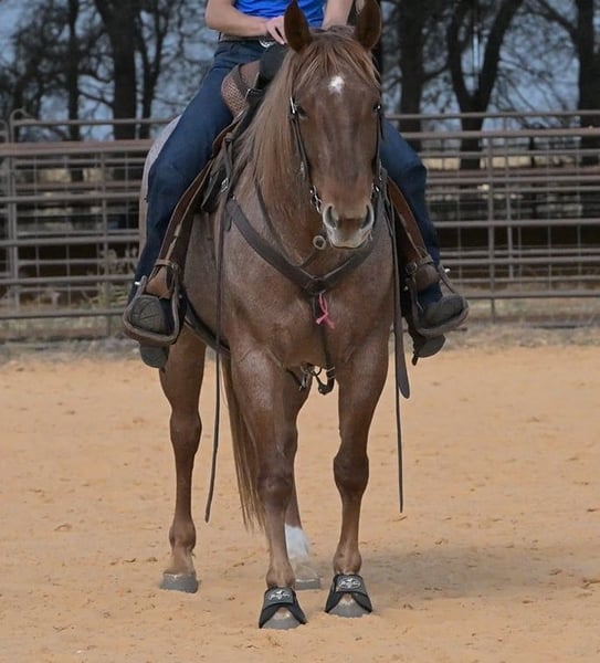 "AVAILABLE ON ONLINE HORSE AUCTION AT www DOT PlatinumEquineAuction DOT com BIDDING OPEN NOW thru SUNDAY | MARCH 22ND! *Final price will be determined on auction site* CONSIGNOR CONTACT INFO: SRM Equine 309-678-7521 LOCATION: Stephenville, TX Flashed By A Bartender aka Ruby is just as her name describes, a gem. If you’re looking for versatile and user friendly, this is your gal! I’ve had Ruby in my program since June of 2025 and had the privilege of purchasing her from the person that raised her from a yearling. She hasn’t been passed around and I know her like the back of my hand. If I need to stick someone on a horse and I’m not entirely confident that they actually know how to ride, Ruby’s my go to gal. She has been SOO easy! Point and shoot, she’ll go for you. She has a very smooth trot and a nice short, comfortable lope, making her enjoyable to ride all day. Extend her trot and move out or sit down and ask for her sweet little jog, she does it with ease. Ruby has all the buttons a person could ask for but is also one that you don’t have to worry about accidentally pushing a button and confusing her, she’s very forgiving. Neck reining, side passes, pivot on the forehand or haunches, open/close gates, pony colts, flag colts, I could go on and on about what this gal can do and has done. She knows how to carry herself correctly and look good while doing it. Ranch versatility would be right up her alley! Don’t get to ride every day? Not a problem for Ruby. She handles time off very well and doesn’t throw a fuss. Turn outs, stalls, or pastures, she’s been in it all and doesn’t have any issues. Ruby hauls to new places well and stands at the trailer quietly. Shes been to many barrel racing jackpots for expos, as well as a few ropings and she handles the atmosphere great. I’ve patterned Ruby on the barrels and she does high lope a very nice pattern VERY easily. She would be great for a youth or someone not looking to win the 1D to run barrels on. I’ve also sorted cattle and roped with Ruby and she loves it all. She goes to cattle and doesn’t mind getting in the herd and pushing on them if she has to. Ruby is easy to be around, and kind-natured. She loves to be loved on! She’s the type that fits well into just about any program. She’d stand all day to be brushed or bathed, stands for the farrier, vet, saddling, mounting, etc. Ruby stands 14.3 hands and is located in Stephenville, TX. Give Shelby a call at 309-678-7521, we’d love for you to come try her!