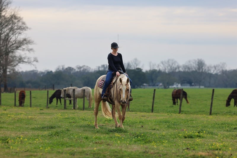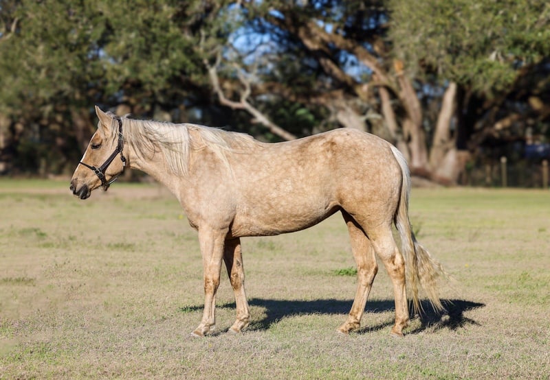 ℳ𝒶𝓇𝒸𝒽 ♦️𝐑𝐈𝐃𝐄𝐑'𝐒 𝐂𝐇𝐎𝐈𝐂𝐄♦️ Happening now thru MONDAY | MARCH 9th - Available EXCLUSIVELY on HorseBid's website! For more details and to register visit: www.Horsebid.com CONSIGNOR CONTACT: Renee Castleman 251-725-7344 LOCATION: GrandBay, AL BREED: Quarter Horse REGISTERED: Yes REGISTERED NAME: SCQH Irish Cash COLOR: Palomino HEIGHT: 15 AGE: 6 GENDER: Mare SCQH Irish Cash, affectionately known as Honey, is a stunning 6-year-old palomino mare with beauty and heart to match. She didn’t earn her name from her golden color alone — Honey is truly one of the sweetest horses I’ve ever owned. This mare has a dog-like personality and absolutely loves people. She’ll meet you at the gate and patiently wait to be brought in. When it’s time to halter or bridle, she lowers her head willingly, always eager to please. Honey genuinely wants to be your partner and your friend. Honey spent 90 days with a professional trainer as a 2-year-old, and since then she has been my main mount. She’s been used to track calves, has done some team penning, and has enjoyed plenty of trail riding. Nothing seems to bother her — she’s steady, willing, and confident. With her kind temperament and athletic ability, I believe she has the potential to excel in any discipline. Honey is sound and requires no special maintenance. She does crib slightly, but it is minimal and often goes unnoticed. Anyone is welcome to come meet Honey. She’s a remarkable mare with a personality that wins everyone over.