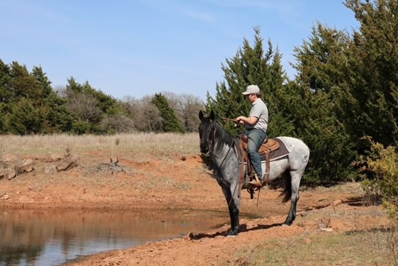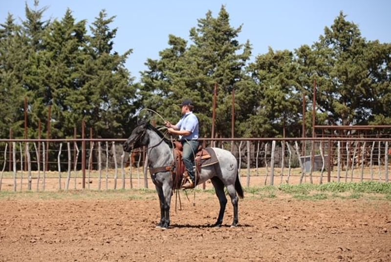 🌟𝑨𝒑𝒓𝒊𝒍 𝐀𝐋𝐋 𝐒𝐓𝐀𝐑 𝐋𝐈𝐍𝐄𝐔𝐏🌟 Happening now thru MONDAY | APRIL 6th - Available EXCLUSIVELY on HorseBid's website! For more details and to register visit: www.Horsebid.com CONSIGNOR CONTACT: Dolago Performance Horses 860-942-0623 LOCATION: Ripley, OK BREED: AQHA REGISTERED: Yes REGISTERED NAME: RKN WICKED REKINDLE COLOR: Blue Roan HEIGHT: 15 AGE: 6 GENDER: Mare If you’re looking for a true been there, done that kind of mare, this blue roan checks every box. She’s as broke, gentle, and dependable as they come with the kind of mind you can trust day in and day out. Bluebell is a 6 year old 15 hand tall gorgeous and shapey blue roan mare. This mare is a dream to ride. She carries herself naturally, rides soft in the bridle, and responds to the lightest cues. She’ll walk, trot, and lope collected circles on a loose rein, picks up both leads with ease, and stays smooth and balanced the whole time. She neck reins, moves off your leg, side passes, and has a nice, correct stop. Whether you’re a confident rider or just getting along, she makes you feel comfortable and in control every ride. She’s the kind that rides the same every single day no warm-up needed, no funny business. Step on after time off and she’s the same steady, willing partner. Quiet, forgiving, and honest, she’s the type that builds confidence instead of taking it away. She’s the kind you can take absolutely anywhere because she’s been everywhere. Down the trails, through water, over rough country, around traffic, dogs, or chaos she handles it all quiet and confident. Gentle enough for the whole family to enjoy, but still handy and broke enough to get a job done when needed. She has a calm and easy demeanor which makes her easy for anyone to get along with and be around. She can ride alone or in a group same as being turned out! She’s one you don’t have to stress about over anything. She is started on the head and heel side and shows great promise! She’s been used all day around the farm doctoring wheat cattle and on the feed lot. She tries her hardest no matter what your doing with her wether it’s the trails, a long day of work, or roping in the arena. She really is the girl who can do it all!