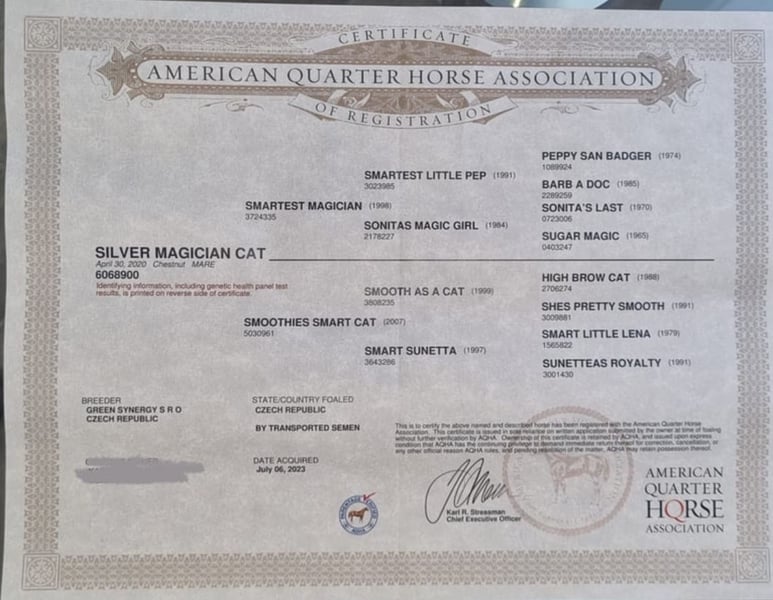Traumstute mit Top-Papier sucht ihr Für-immer-Zuhause – Verkauf im Auftrag Im Auftrag verkaufen wir Silver Magician Cat, eine außergewöhnlich schöne American Quarter Horse Stute (Chestnut, *30.04.2020), die mit Qualität, Ausstrahlung und einem erstklassigen Pedigree überzeugt. Eckdaten auf einen Blick: • Rasse: American Quarter Horse • Farbe: Chestnut • Geschlecht: Stute • Geboren: 30. April 2020 • Preis: aktuell 17.000 VB (steigend mit weiterem Ausbildungsstand) • Abstammung: Smartest Magician x Smoothies Smart Cat (u. a. High Brow Cat, Smart Little Lena & Peppy San Badger im Papier) Charakter, Talent & Ausbildung: Silver Magician Cat ist eine Stute, die sofort ins Auge fällt. Sie bringt sehr gute Bewegungen, viel Ausdruck und eine tolle Präsenz mit. Unter dem Sattel zeigt sie sich stets motiviert, lernwillig und mit einer angenehmen Arbeitseinstellung. Sie befindet sich aktuell in der weiteren Grundausbildung und hat bereits erste Erfahrungen am Rind gesammelt. Dabei zeigt sie deutlich ihr Talent und ihre Veranlagung – sie möchte gefördert und weiter ausgebildet werden. Für wen ist sie geeignet? Aufgrund ihres Potenzials wünschen wir uns für sie einen erfahrenen Reiter, der Spaß daran hat, mit einem jungen Pferd zu arbeiten und es gezielt weiterzuentwickeln. Durch ihre Abstammung und ihr Talent ist sie besonders interessant für den Rindersport (Cutting, Cowhorse, Ranch Riding), aber auch für ambitionierte Reiter anderer Westernsparten absolut spannend. Zucht & Zukunft: Ihr hervorragendes Papier macht sie perspektivisch auch züchterisch sehr interessant. Eine Stute, die nicht nur sportlich, sondern auch langfristig überzeugt. Gesundheit & Pflege: • Große AKU vom 17.08.2023 ohne Befund, inkl. Röntgenbilder • Regelmäßig beim Zahnarzt und Physiotherapeuten • Aktuelle Entwurmung und Mineralstoffversorgung • Stets gepflegt und liebevoll betreut Sonstiges: • Passendes, komplettes Equipment kann auf Wunsch mit erworben werden • Der Verkauf erfolgt ausschließlich aus gesundheitlich bedingter Reitsportaufgabe Besichtigung & Proberitt: Silver Magician Cat kann nach Absprache jederzeit besichtigt und probegeritten werden. Sie steht seit Oktober 2025 im Vollberitt. Wer eine junge Stute mit Qualität, Charakter und viel Zukunftspotenzial sucht, wird an Elli große Freude haben.