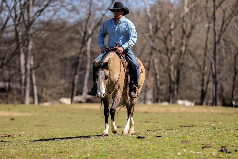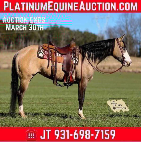 ONLINE AUCTION Place your bids at www.PlatinumEquineAuction.com Starting Bid $3500 Auction ends March 30th, 2025 Need a new saddle? Check out White Rock Saddles on our website or Facebook! Check out Miss Nevada!! Although this Buckskin beauty looks like she is competing for the Miss America crown she is ready to get down and dirty on the ranch or on the trails! Nevada is an adorable 15-15.1hh Quarter Horse mare that is 5 years old. This lady has done it all from roping out of the box to pasture roping. She has been hauled to team sortings and had 2 months of professional cutting training working on the flag. Nevada has been used daily on the ranch, she has sorted, doctored and rode fences. She has penned cattle at the sale barn and worked on a feedlot as well. This mare has a lot of handle and is one hand broke! She will really ride around and has all of the right moves! She lopes nice circles, takes her leads and has a good stop! She will cross creeks, ditches, logs and navigate rough rocky areas. She has been ridden many miles in the mountains and encountered every obstacle possible on the trail. Nevada is a do it all type of horse than anyone should appreciate! If you have any questions, would like to make a Buy It Now Offer or set up a Facetime Call, contact J & S Livestock JT 931-698-7159 Located in Santa Fe, TN. ONLINE AUCTION Place your bids at www.PlatinumEquineAuction.com Starting Bid $3500 Auction ends March 30th, 2025 Need a new saddle? Check out White Rock Saddles on our website or Facebook!
