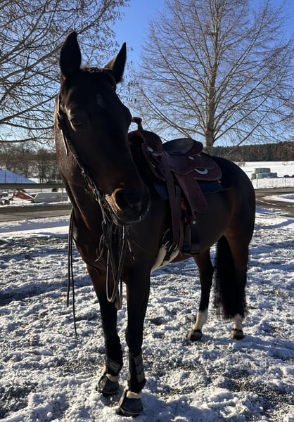 Meine Quarter Horse Stute Holly 💕 (geb. 06/2020, Dragon Jac x Jays Perfect Cee, 1,56 m) sucht auf diesem Weg einen besonderen Menschen, bei dem sie ankommen und weiter wachsen darf 🤍 Holly steht im athletischen Typ 💪🐎 und bringt ordentlich Go mit 🔥. Sie ist aufmerksam, fein und sensibel – eine Stute, die zuhört, mitdenkt und eine ehrliche, feine Verbindung zum Menschen sucht ✨ Sie wünscht sich einen Menschen, der mit Geduld, Klarheit und Gefühl arbeitet. Ruhige Führung, klare Strukturen und sanfte Kommunikation geben ihr Sicherheit 🤎. Wer Spaß daran hat, mit einem Pferd partnerschaftlich zu arbeiten, gemeinsam zu wachsen und Vertrauen zu entwickeln, wird in Holly eine außergewöhnliche Partnerin finden 💫 Holly wurde schonend angeritten, kennt und liebt die Bodenarbeit und wurde in Richtung Allround ausgebildet ✨. Sie kennt das Gelände , war auf Wanderritten unterwegs und wurde zweimal auf Turnieren vorgestellt 🎀. Sie war immer gesund, der Zahnarzt war vor kurzem ebenfalls da. Holly ist kein Anfängerpferd, zeigt keine Unarten und ist für Menschen geeignet, die Erfahrung im Umgang mit sensiblen, motivierten Pferden haben. Aktuell steht sie in Boxenhaltung mit Paddock, ist barhuf und kennt den geregelten Stallalltag 🌾 💖 Platz vor Preis! Für Holly steht ein liebevolles, passendes Zuhause mit Zeit, Herz und Verständnis an erster Stelle – kein Notverkauf Der passende Sattel kann bei Bedarf miterworben werden 🙂 📩 Bei ernsthaftem Interesse freue ich mich über eine Nachricht Weitere Infos, Bilder und Videos gerne auf Anfrage 😊