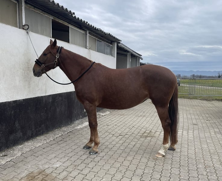 Wir verkaufen schweren Herzens unsere tolle Quarter/Selle Français Mix Stute, geboren 2020. Sie ist ein lauffreudiges, gleichzeitig aber unerschrockenes Pferd mit viel Talent in verschiedenen Bereichen. Unter dem Sattel zeigt sie sich sensibel und fein, weshalb sie sich einen Reiter wünscht, der gefühlvoll und ohne Druck mit ihr arbeitet. Im Gelände geht sie sowohl alleine als auch in der Gruppe völlig unkompliziert, läuft dabei gerne vorne und zeigt sich absolut unerschrocken. Hunde, Rinder, Traktoren, LKW, laute Maschinen, etc. bringen Sie nicht aus der Ruhe. Sie besitzt eine solide Grundausbildung und kennt Dressurarbeit, Stangenarbeit, kleine Sprünge, Working Equitation vom Boden sowie umfangreiche Bodenarbeit. Seit 3 Monaten steht sie im professionellen Beritt und wird in Richtung Western weiter gefördert, da wir den Eindruck haben, dass diese Reitweise ihr sehr entgegenkommt. Mit ihren 157 cm Stockmaß ist sie kompakt gebaut, hat viel Rumpf, starke Gelenke und deckt problemlos auch größere Reiter ab. Sie ist bestens gepflegt, geimpft und gesund. Der Preis ist im realistischen Rahmen verhandelbar. Wird nur in beste Hände abgegeben. Platz vor Preis. Weitere Informationen und Videos auf Anfrage.
