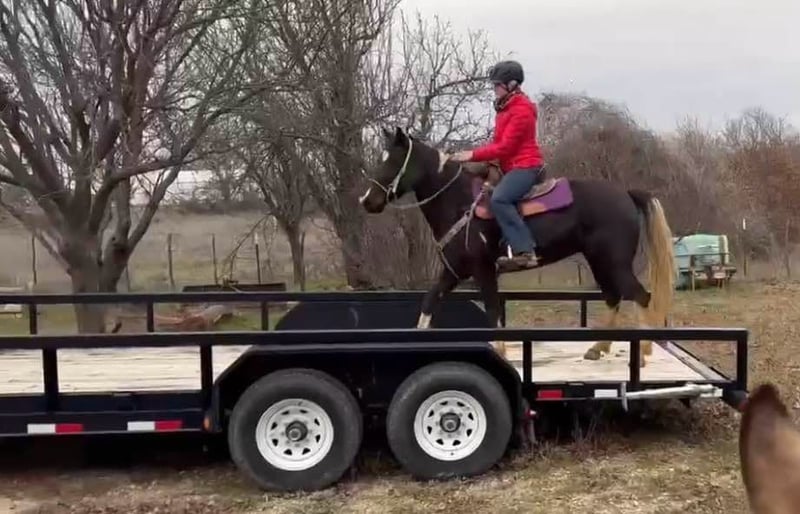 ONLINE AUCTION Place your bids at www.PlatinumEquineAuction.com Starting Bid $3500 Auction ends March 9th, 2025 Need a new saddle? Check out White Rock Saddles on our website or Facebook! Zora is a 14.1H, 5 yr old TRUE black overo paint mare. This GORGEOUS mare has one of the SWEETEST personalities around. She is a super fun, willing to please all around mare! She loves riding outside and also has potential in the arena to go in any direction! She’s been owned by the same people her whole life where they just used her to pleasure ride! Zora is talented enough to go on to make a great youth prospect or trail horse for someone looking for a fun one to enjoy! She rides good, knows all the major basics and is ready to go on with! She walks, trots and lope when asked and stops good! She’s not spooky, no buck, bolt or rear and is easy to get along with! She absolutely loves attention and will be the first one to greet you in the barn or pasture! Zora naturally takes to all new things and is very bravely adventurous. She is safe and gentle, loads, leads and bathes great! She would be the perfect addition to any family looking for a fun one to go one with in any discipline! She’ll go all day without a complaint! Don’t miss this sweet, fun, willing to please STUNNING black and white mare. They don’t come around colored like her often with her personality and potential! More pics and videos on her website page at northtexashorsecompany.com/zora. Please call Blair with North Texas Horse Company for more info at 817-757-3046. We are located in Weatherford, TX and can help arrange affordable shipping to anyone!! ONLINE AUCTION Place your bids at www.PlatinumEquineAuction.com Starting Bid $3500 Auction ends March 9th, 2025 Need a new saddle? Check out White Rock Saddles on our website or Facebook!