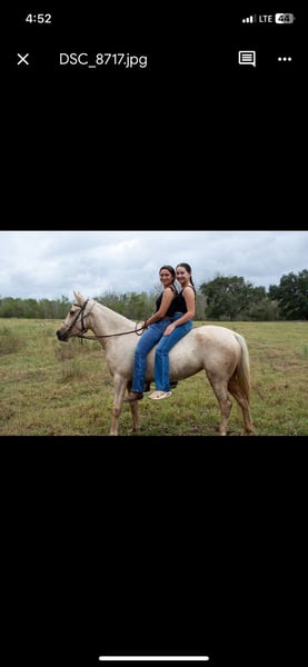 Been there done that kinda horse. Nothing much phases this girl. Shes a jungle gym for kids and a working partner for any adult. Come give her a try here in Alvin Texas.