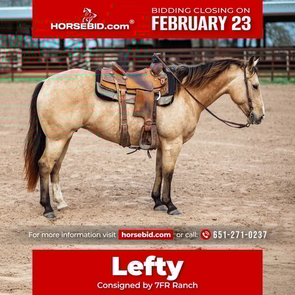 💎 𝐓𝐇𝐄 𝓓𝓲𝓪𝓶𝓸𝓷𝓭 𝐒𝐇𝐎𝐖𝐂𝐀𝐒𝐄 💎 Happening now thru MONDAY | FEBRUARY 23rd - Available EXCLUSIVELY on HorseBid's website! For more details and to register visit: www.Horsebid.com CONSIGNOR CONTACT: 7FR Ranch 651-271-0237 LOCATION: Normangee, TX BREED: Quarter Horse REGISTERED: Yes REGISTERED NAME: Jewells Parr Bar COLOR: Buckskin HEIGHT: 14.1 AGE: 7 GENDER: Mare Jewells Parr Bar is a beautiful 2019 buckskin AQHA mare with the kindest disposition you’ll find. She has a soft eye, gentle nature, and an easygoing personality that makes her a pleasure to be around both on the ground and in the saddle. This is the type of mare you can trust — quiet, willing, and forgiving. She is started right on the head side and shows natural ability tracking cattle. She rides soft, moves off your leg, and stays level-headed in new situations. Whether you’re working cattle, roping, or just cruising around the ranch, she stays relaxed and confident. Lefty is extremely user-friendly — easy to catch, saddle, load, and handle. She’s gentle but still athletic enough to go on and do a job. She would make an excellent family horse, rope horse prospect, or dependable all-around partner. She also comes with a strong foundation pedigree featuring Doc Sugar Oak Rascal, Colonel Tycoon, and Lightnins Parr Bar bloodlines, giving her both brains and ability. If you’re looking for a kind, honest, broke buckskin mare that you can enjoy every day, she checks all the boxes. Please contact Molly Falconer for any questions. (651)-271-0237