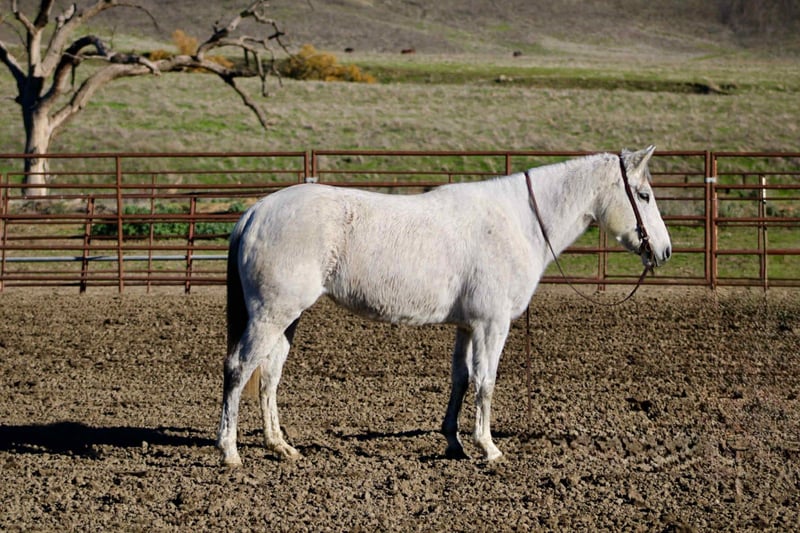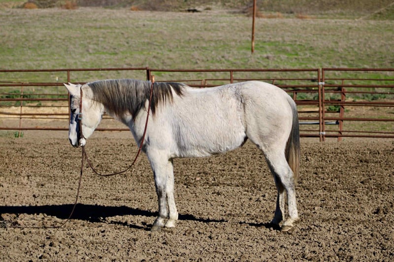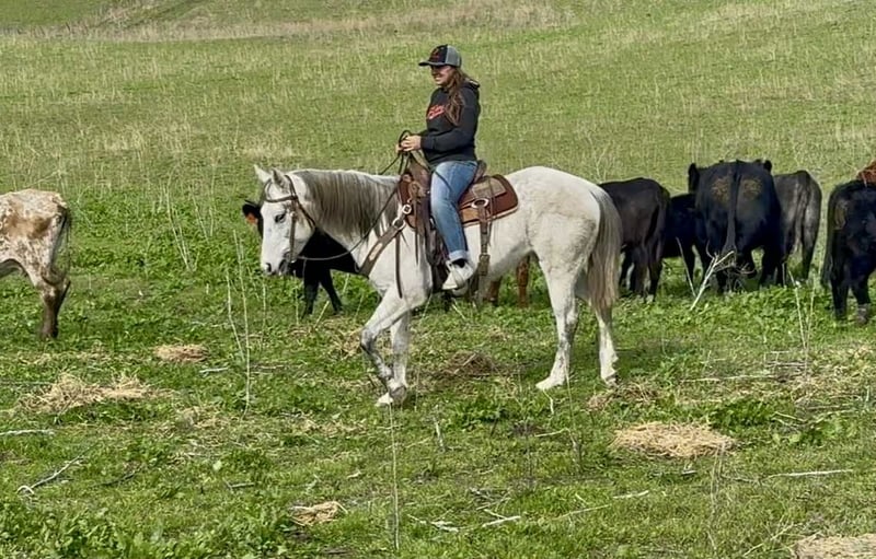 ONLINE AUCTION Place your bids at www.PlatinumEquineAuction.com Starting Bid $3500 Auction ends December 21st, 2025 Need a new saddle? Check out White Rock Saddles on our website or Facebook Tink is a 6-year-old grade grey mare standing at 14.2hh, and she is truly one of those horses that’s a pleasure to own and be around. She has a kind, gentle personality that makes her easy to handle on the ground and a confident, enjoyable partner under saddle. Tink has spent most of her life taking riders of all levels through a variety of trail conditions, both in groups and alone. She has seen traffic, wildlife, construction equipment, water crossings, bridges, and just about anything else you can find outside—and she handles it all with a calm, steady attitude. Under saddle, Tink is coming along beautifully in the arena. She knows her leads, has smooth, comfortable gaits, and offers a light stop with a collected reverse. She stays patient, honest, and willing, without ever getting fresh or reactive. There’s no spook, no attitude, and no bad habits—just a reliable young horse with a mature mind. Tink has also spent time out on the ranch moving cows, and she genuinely enjoys working around them. She ties well, hauls without issue, and gets along with other horses, making her a versatile and uncomplicated addition to any program. With her level head, sweet temperament, and “old soul” feel, Tink is a young mare with her whole future ahead of her, ready to go in any direction you choose. She’s the kind of horse you can trust, enjoy, and build on for years to come. She is located in Bitterwater, CA. for more info contact Cheyenne Rey at 831-537-8746. ONLINE AUCTION Place your bids at www.PlatinumEquineAuction.com Starting Bid $3500 Auction ends December 21st, 2025 Need a new saddle? Check out White Rock Saddles on our website or Facebook