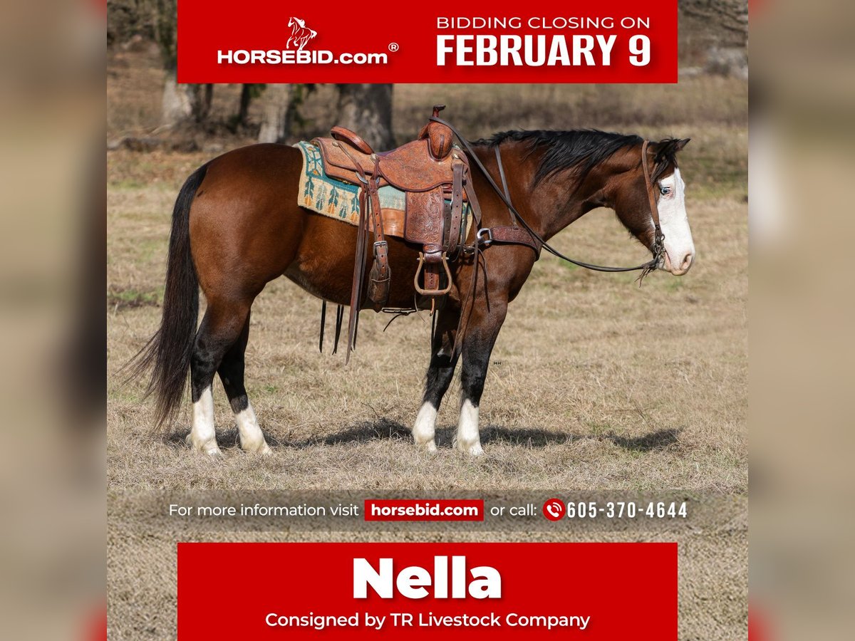 ❤️🔥𝑩𝒆 𝑴𝒊𝒏𝒆 𝐒𝐄𝐋𝐄𝐂𝐓❤️🔥 Happening now thru MONDAY | FEBRUARY 9th - Available EXCLUSIVELY on HorseBid's website! For more details and to register visit: www.Horsebid.com CONSIGNOR CONTACT: TR Livestock Company 605-370-4644 LOCATION: Rusk, TX BREED: AQHA REGISTERED: Yes REGISTERED NAME: Nella COLOR: Bay HEIGHT: 14.3 AGE: 7 GENDER: Mare - [ ] Nella is a 7 year old AQHA bay mare, she stands 14.3 hands tall and is stout! Nella is a finished Reiner and is smooth in all her maneuvers, great spins, big stop, and correct lead changes! She has a super nice short lope, is soft in the face and has a willing attitude. She has also done all aspects of ranch work, from doctoring cattle outside to gathering and sorting in the pens! Nella is absolutely gentle and safe for the entire family and will take care of whoever gets on her! Nella has also been trail rode all over, hauled to lots of state parks and has been on overnight camping trips, she will cross the creeks, logs, bridges and is a point and go type of horse. Super sweet mare that is safe and very broke! Take her to the playdays, show her in the reining, ranch riding and ranch versatility, use her on the ranch, or just trail ride her, you are sure to love this little mare! Call or text 605-370-4644 for more info. She is located in Rusk TX, nationwide shipping is available!