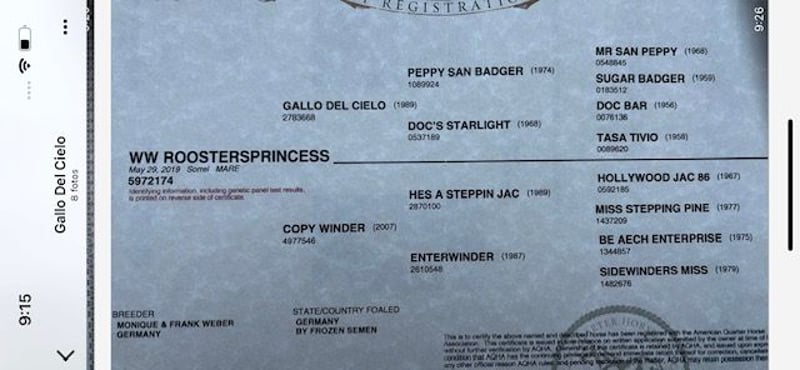 Yegua madre hija directa de Gallo del Cielo