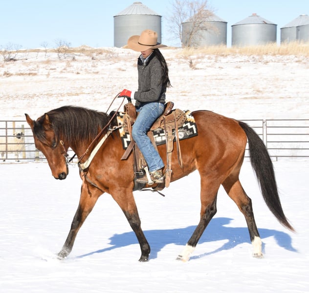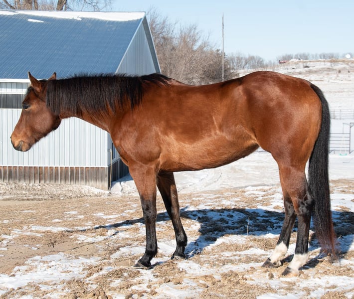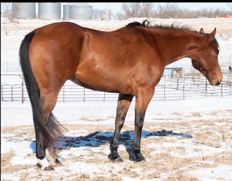 ℳ𝒶𝓇𝒸𝒽 ♦️𝐑𝐈𝐃𝐄𝐑'𝐒 𝐂𝐇𝐎𝐈𝐂𝐄♦️ Happening now thru MONDAY | MARCH 9th - Available EXCLUSIVELY on HorseBid's website! For more details and to register visit: www.Horsebid.com CONSIGNOR CONTACT: Chevelle Shafer 320-296-4308 LOCATION: Glencoe, MN BREED: Quarter Horse REGISTERED: Yes REGISTERED NAME: Jets Hot Effort COLOR: Bay HEIGHT: 15.3 AGE: 7 GENDER: Mare 2019 AQHA bay mare Jett is a 7 year old mare standing 15.3hh with a great mind, solid foundation and consistency in every ride. She is easy to look at and fall in love with her kind eyes, big solid hip and shoulder and 4 solid feet, rides off barefoot and sound. She truly enjoys being outside or in open spaces whether it’s a trail ride or a job around the farm, rope off of her, pull the kids around, let her join in on family fun. Out on the trail she has crossed rivers, up and down steep hills, over bridges and logs and trudged through the thick woods and rough terrain. She approaches her work and any obstacle calmly and is happy to do whatever job is put in front of her. With dogs, atvs, farm equipment being a normal for her. She is easy to handle and quiet in the ground, loads herself in the trailer, stands tied to the trailer all day, stands quietly for bathing, and is cooperative and patient for the farrier. With zero buck, kick, rear or bite. She will walk, trot, or lope off, in or out of the arena on a nice loose rein, while staying soft in her face. Moves beautiful with a smooth trot and nice stop. She is easy to catch out in the pasture and loves attention from anyone that will give it to her!