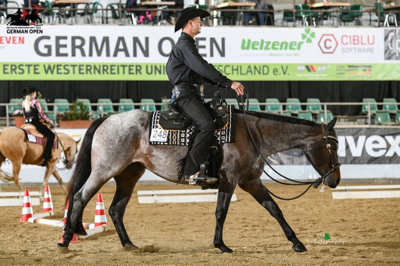 Beautiful, large-framed Quarter Horse mare by top sire VS CODE RED out of a Lazy Loper x One Hot Krymsun mare. "Lotti" has been in my possession since she was four weeks old. She is a true sweetheart: honest, intelligent, fearless. She has always lived outdoors in a herd of mares and gets along very well there. At four years old, she competed for a year in sport, impressing in the Young Horse Basics, Young Horse Trail, as well as Junior Trail and Pleasure classes. Among other achievements, she placed in both the Young Horse classes (Trail + Basics) at the German Open. Lotti has some health issues, which prevent her from competing at an ambitious level anymore. She requires special shoeing and regular, meticulous hoof care. In good phases, she is conditionally rideable. More details can be discussed personally. She is explicitly not sold as a riding horse, especially not for competition purposes. I am looking for a home with plenty of free movement, either in an open or active stall, and someone who will handle her according to her health condition. I could also see her as a breeding mare. Lotti is vaccinated (EHV, Influenza, Tetanus, West Nile), dewormed three times a year, and is shoe- and loading-trainable. This is not an urgent sale – she will only go to a proven, caring home!