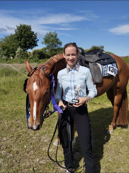Prachtige allround Quarter Horse merrie – succesvol tot LK2, kindvriendelijk en absoluut betrouwbaar Te koop aangeboden: mijn Quarter Horse vosmerrie (geboren in 04/2019, ca. 1,60 m), afstammend van Ain't It The Blues uit Pleasure Mary. Ze is sinds haar geboorte in mijn bezit en is met veel tijd, rust en systematisch trainen uitgegroeid tot een veelzijdig, eerlijk en prestatiegericht allround paard. ✨ Opleiding & successen Geslaagd tot LK2 Futurity: succesvol geshowd in de klasse Veulenkeuring-winnares, 2019 veulenkampioenschap in Aken hoog geplaatst Opgeleid in: → Western Pleasure → Horsemanship → Trail → Showmanship Daarnaast ook geshowd in Ranch Riding – toont hier eveneens veel talent Ze is zeer werkwillig, fijn te rijden en altijd gemotiveerd, maar heeft daarbij een attente, gevoelige ruiter nodig. Karakter & dagelijks leven Absoluut braaf in omgang en onder het zadel. Kindvriendelijk, ook door kinderen gereden en op wedstrijden gepresenteerd. Zeer mensgericht en eerlijk. Verlaadbaar (gaat altijd alleen in de trailer). Smeden- en dagelijkse veiligheid. Ken honden en andere dieren. In het terrein is ze zeer betrouwbaar, gaat ook ontspannen alleen het bos in en staat voor alles open – zelf baden in het meer, extreem trail rijden, etc. vormen geen probleem. Houden van Grootgebracht in een actief stalconcept. Momenteel in een paddockbox met dagelijks buitenuitloop. Zeer sociaal en vlot, rangmatig in het midden. Ideaal zou ik haar vinden in een omgeving waarin ze vrij kan bewegen (bijvoorbeeld een kleine paddock met uitloop). Opleiding aan de longe Degelijke longeer- en vrijheidsdressuur. Ken dubbele longe. Regelmatig training, onder andere bij Lara Tauer (Mustang Makeover). Loopt vrij alle zijgangen, komt op commando, maakt complimenten, Spaanse pas, galop aan de hand. Piaffe is speels begonnen. ❤️ Gezondheid PSSM2 n/P2 (single-gene carrier) – symptoomvrij. Volledig hersteld van een gebroken sprongbeen (röntgenfoto’s aanwezig). Voor wie geschikt? Een ideaal paard voor: Ambitieuze recreatie- en amateurwedstrijdruiters. Jongeren / kinderen. Ruiters die een betrouwbaar, veelzijdig allround paard zoeken. Ze is geen paard voor puur prestatiegericht rijden, maar voor iemand die met gevoel rijdt en haar kwaliteit weet te waarderen. Overige informatie Loopt barhuf en is beslagen. Uitgebreid toebehoren kan mee worden overgenomen. Ik doe haar alleen weg om gezondheidsredenen (van mijn kant). Ze is voor mij een echt hartpaard en wordt alleen verkocht als alles klopt. Ik zoek een plek waar ze verder gestimuleerd en gewaardeerd wordt. Meer foto's en natuurlijk video’s zijn beschikbaar en stuur ik graag bij serieuze interesse.