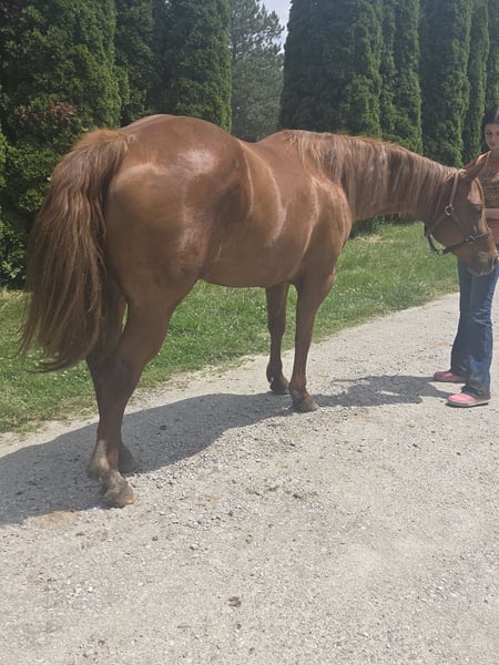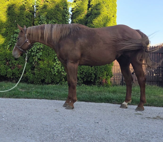 VERFÜGBAR BEI DER ONLINE-HORSE-AUKTION unter www.MagicHorseAuction.com GEBOTE AB JETZT BIS DIENSTAG, 14. OKTOBER! – SOFORTKAUF MÖGLICH! *Der endgültige Preis wird auf der Auktionsseite festgelegt* KONTAKT DES ABGEBERS: Sarah Collins, 419-822-7526 STANDORT: Walbridge, Ohio Zunächst einmal: Sage kann als AQHA registriert werden. Ihr Hengstvater ist Kissin the Girls, der keine Vorstellung braucht, und ihre Mutter ist Only Invite the Hot. Ich habe diese einzigartig schöne Stute seit sie 4 Monate alt ist aufgezogen. Das Leben hat mich nur daran gehindert, sie weiterhin zu registrieren. Sage ist 16,2 Hand hoch und gebaut wie ein echtes Kraftpaket. Kein Bild kann dieser vielseitigen Allround-Stute gerecht werden! Sage begann ihre Showkarriere als Fohlen im Showmanship und Halter. Sie wurde in Ranch, Western und English Pleasure, Horsemanship, Equitation und Trail gezeigt, bis sie 4 Jahre alt war. Auch Musterläufe meistert sie hervorragend. Sie wurde nie überfordert oder überarbeitet. Sie wurde artgerecht aufgezogen und langsam sowie korrekt eingeritten. Ihr Trab/Longtrot ist für Pleasure-Shows fertig ausgearbeitet. Der Longe braucht noch eine Feinabstimmung für Western Pleasure, ist aber für Ranch- oder English-Disziplinen bereit. Man kann diese Stute den ganzen Tag vorführen, mit wenig Vorbereitung – ihre Ausdauer lässt nie nach! Sie liebt die Showpiste und kennt ihre Aufgabe bestens! Sie reitet einhändig und ist spurentrainiert. Sehr sensibel auf die Beine reagiert sie bei 360-Grad-Drehungen oder Sidepass. Sage kann wirklich alles! Sie ist sehr an das Showleben gewöhnt und wurde überallhin transportiert, um in allen Disziplinen zu zeigen. Im Gelände überwältigt sie alles, was ihr im Weg steht, inklusive Baumstämme, Brücken, Schlamm und Wasser. Sie folgt, geht in der Mitte oder führt, alles auf lockerer Zügelhaltung. Sage achtet sorgfältig auf ihre Füße und sorgt stets für ihren Reiter. Sie ist ein echtes DIY-Pferd, das monatelang im Stall stehen kann und jedes Mal genau so reitet wie zuvor. Sie erinnert sich an ihr Training und bleibt braves Pferd! Verkehrssicher, gewöhnt an Traktoren, Motorräder, Fahrräder und Quad. Ihr ganzes Leben wurde sie bestens gepflegt: regelmäßig geimpft, entwurmt und gepflegt. Sie hat nie Hufeisen getragen oder gebraucht, selbst auf felsigem Gelände nicht. Nie lahm gegangen. Regelmäßig behandelt durch Chiropraktiker und Massagen. Nie injiziert oder anderweitig behandelt. Sage lebt in einer gemischten Herde mit 24/7 Weidegang auf Grasheu. Sie ist sehr pflegeleicht bei nur 6 Pfund Hafer täglich. Sie steht auch hervorragend im Stall, ohne zu nagen, zu graben oder zu treten. Sie begrüßt dich immer am Tor, egal in welcher Größe das Weideland ist. Sie lässt sich gut anhängen (Twitch für die Ohren), verladen, baden und anbinden – absolut ohne Macken oder schlechte Angewohnheiten! Der EINZIGE Grund, warum diese wunderschöne Stute verkauft wird, ist, dass ich mir 2023 einen Rückenbruch zugezogen habe. Es ist nicht fair, sie im Feld stehen zu lassen oder nur gelegentlich im Gelände zu reiten. Ich beantworte gern alle Fragen zu ihr unter Sarah Collins, 419-822-7526. Transport kann überall mit sicheren, bekannten Transportunternehmen arrangiert werden. Verpassen Sie nicht diese beeindruckende Stute, die noch eine ganze Showkarriere vor sich hat und hochwertige Fohlen produzieren kann!